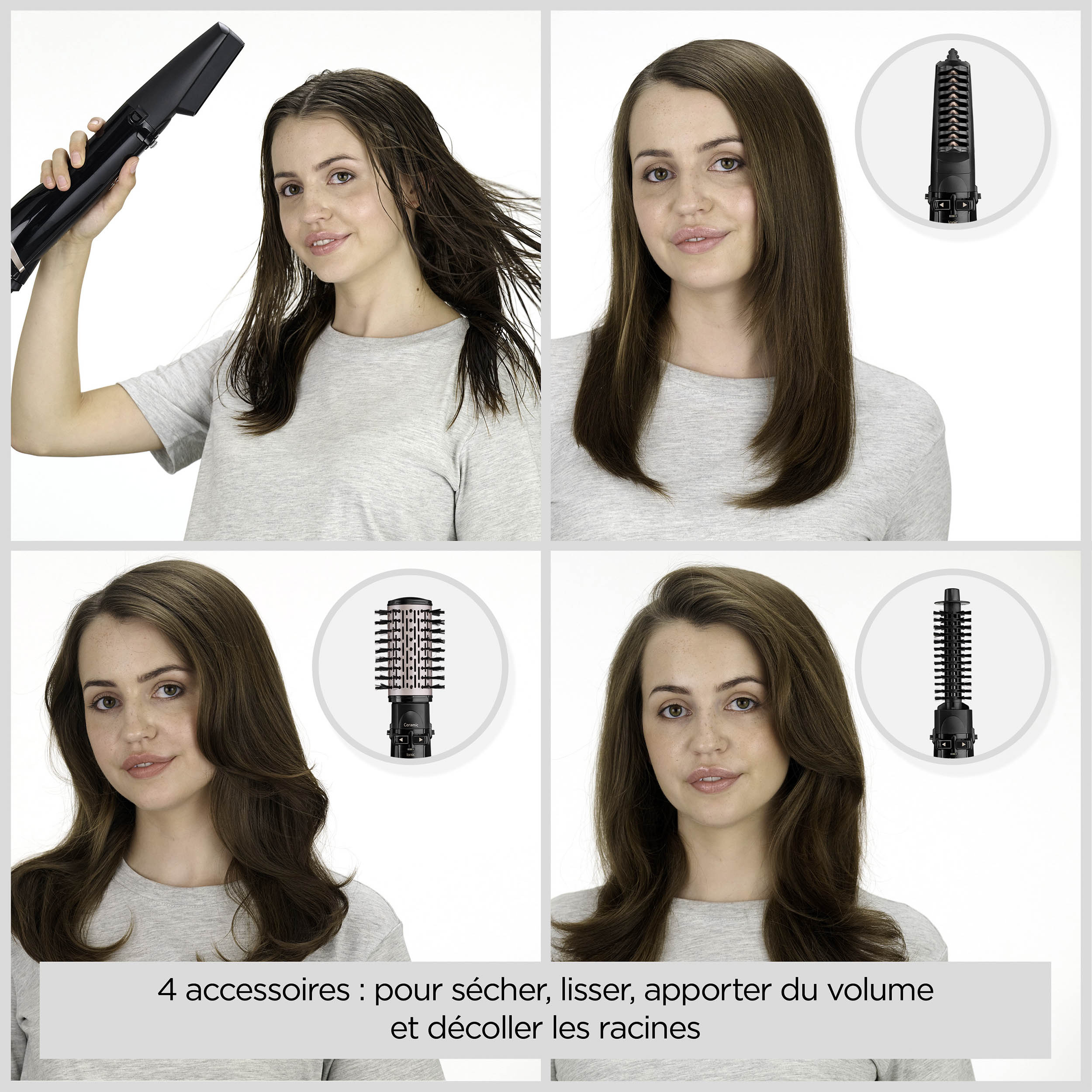 | Accessoires inclus | Concentrateur,Brosse à cheveux ronde (20 mm),Accessoire lisseur,Brosse rotative (50 mm) |