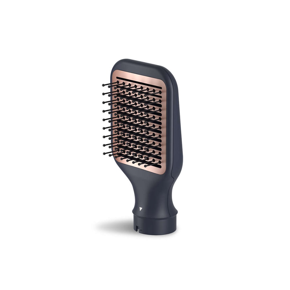 La brosse soufflante possède de nombreux accessoires ce qui offre une multitude de possibilités de coiffure.