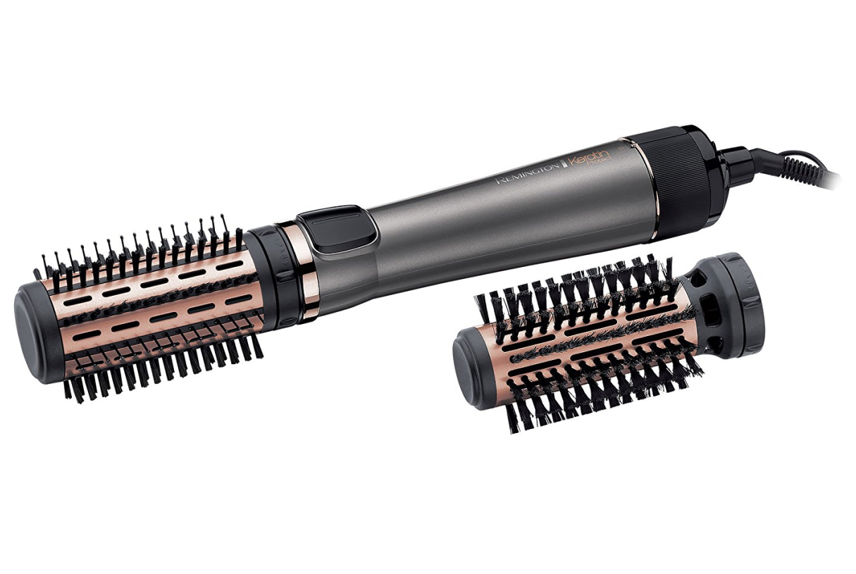 as8810 - brosse soufflante rotative 1000w - Brosse soufflante rotative Keratin Protect Remington AS8810 avec revêtement Advanced Ceramic Kératine et huile d'amande. Brosse rotative bidirectionnelle. Brosse thermique 50 mm à poils mixtes pour un brushing parfait. Brosse thermique 40 mm à poils mixtes pour créer de belles ondulations. - Coloris : Argent.