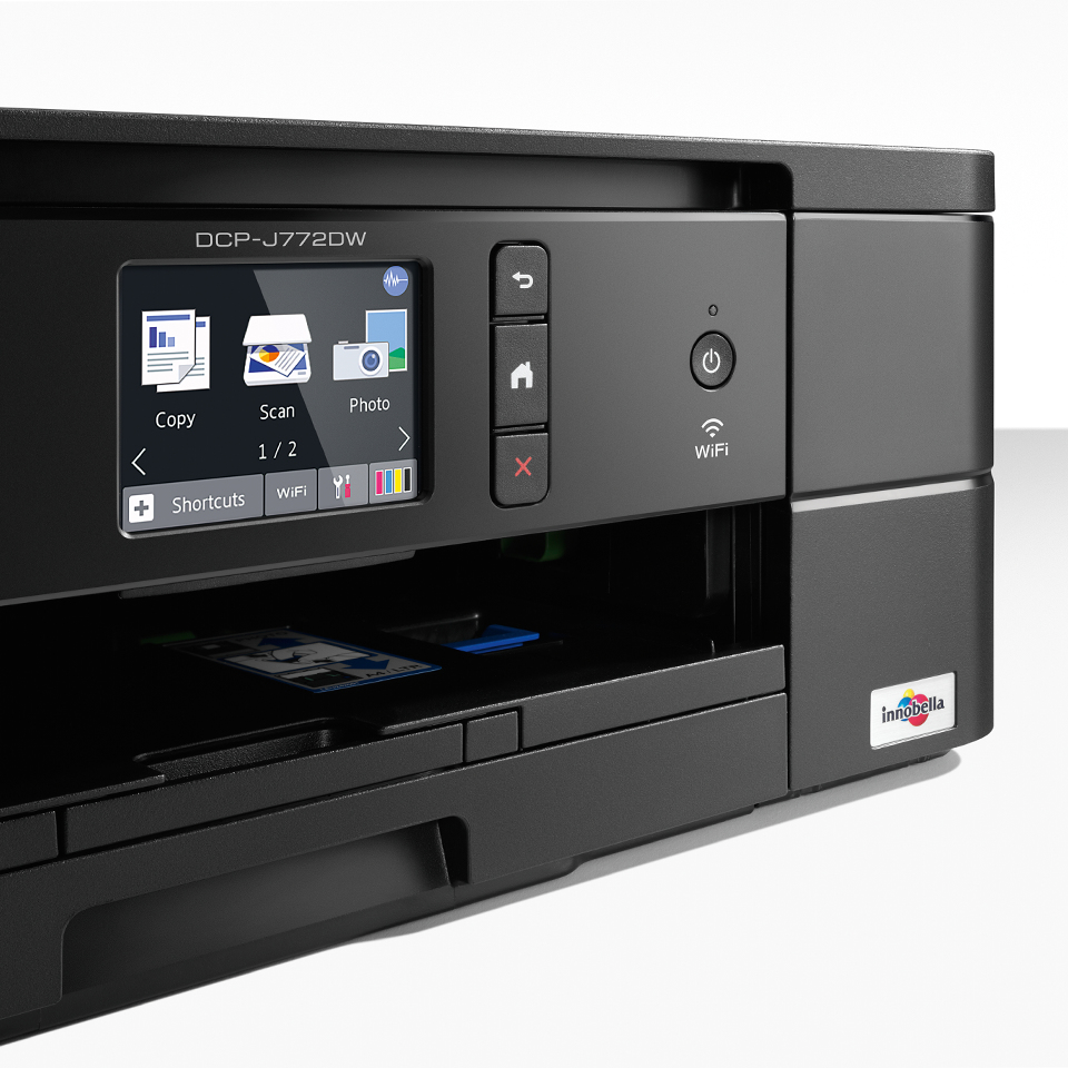 Brother DCP-J772DW. Technologie d'impression: Jet d'encre, Impression: Impression couleur, Résolution maximale: 6000 x 1200 DPI, Vitesse d'impression (couleur, qualité normale, A4/US Letter): 23 ppm. Copier: Copie couleur, Résolution max. des copies: 1200 x 1200 DPI. Numérisation: Numérisation couleur, Résolution de numérisation optique: 1200 x 2400 DPI. Taille de papier de série A ISO maximum: A4. Wifi. Impression directe. Couleur du produit: Noir