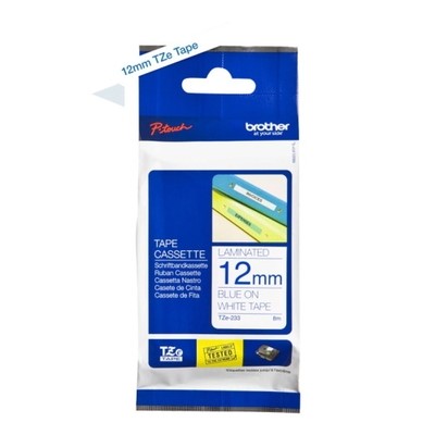 TZE233 - Ruban Bleu sur Blanc 12 mm Brother
