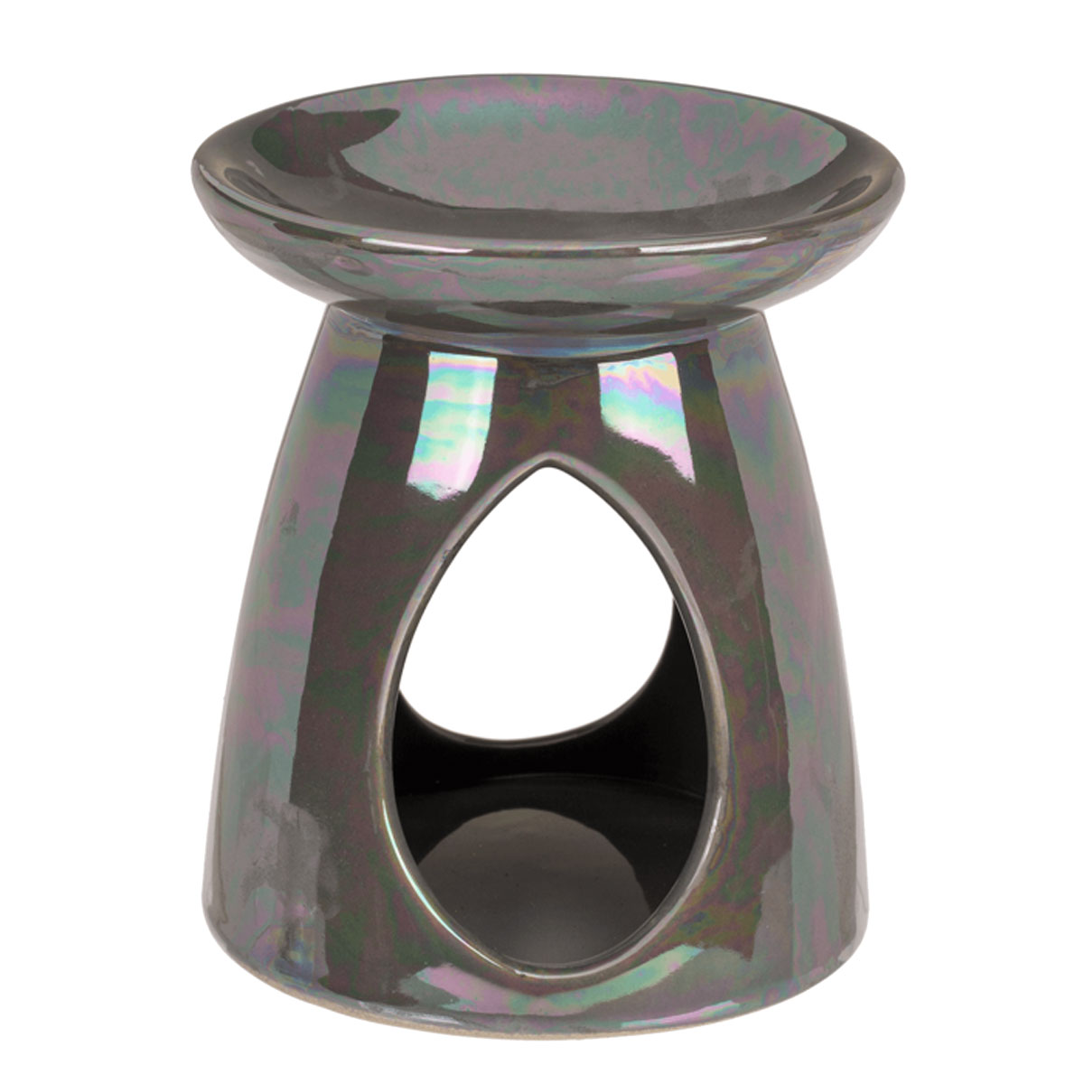 Brûle-parfum gris nacré en céramique Brûleur en céramique pour faire fondre la cire aromatique, parfums à bruler et huiles essentielles. Fonctionne avec une bougie chauffe plat non fournieHauteur 13 cm - Largeur 11 cm - Profondeur 11 cm