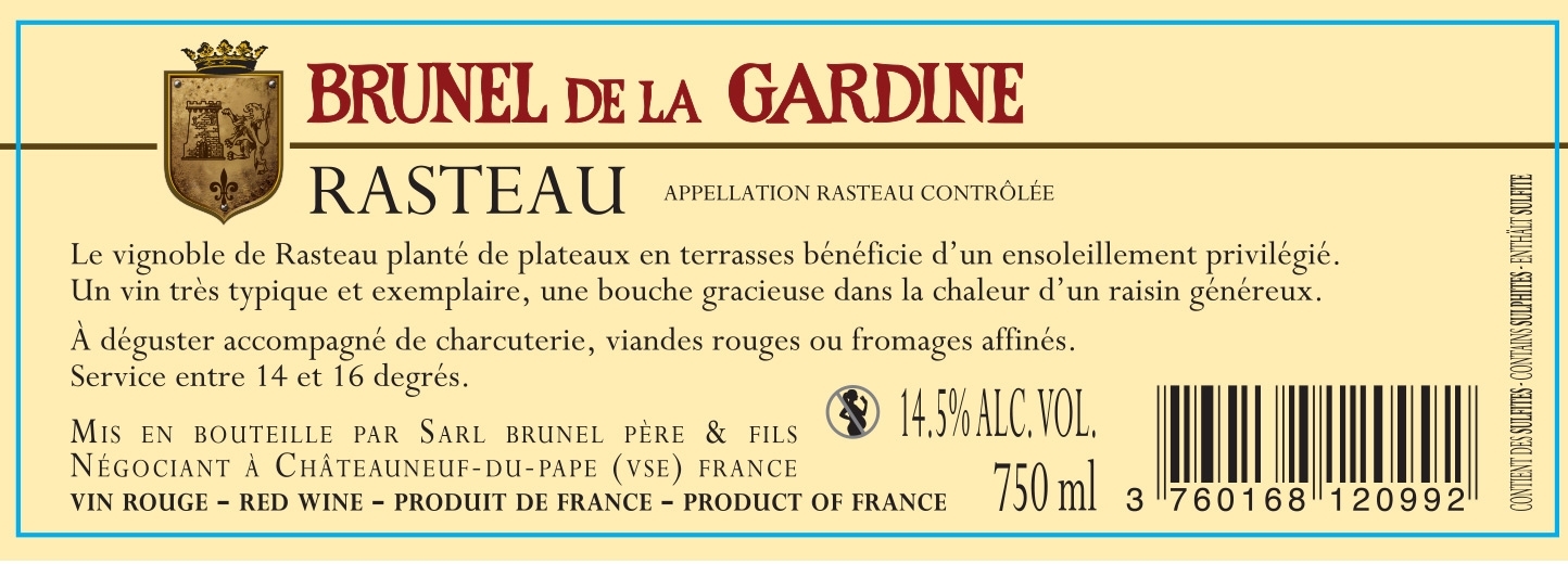 | Libellé | Brunel de La Gardine, 2020 - Rasteau AOP - Rouge - 75 cl |