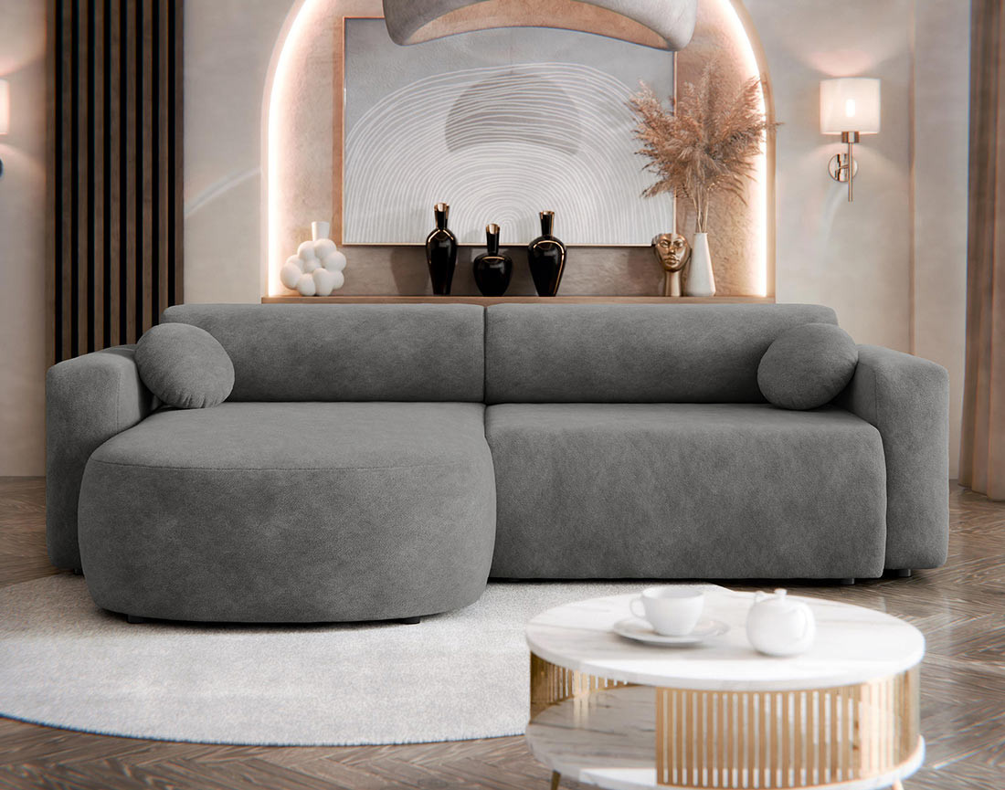 Avec ses lignes arrondies et son design tout en douceur, le canapé d'angle Brunello insuffle une atmosphère chaleureuse et raffinée à votre intérieur. Son tissu délicatement doux au toucher invite à la détente, tandis que ses coussins ronds inclus apportent une note d’élégance et de confort supplémentaire. Pensé pour s’adapter à votre espace, son angle réversible vous permet de moduler votre agencement selon vos envies, pour un salon toujours harmonieux et accueillant.
