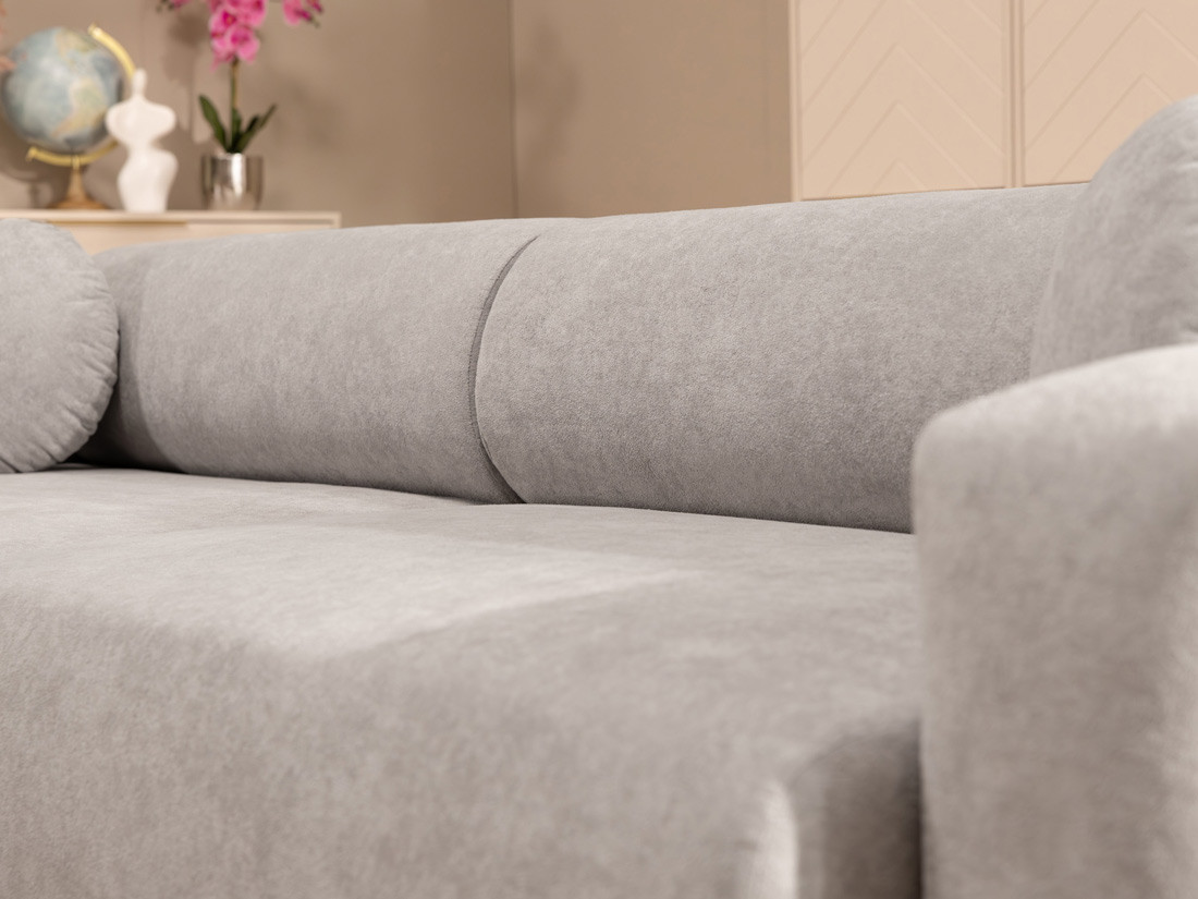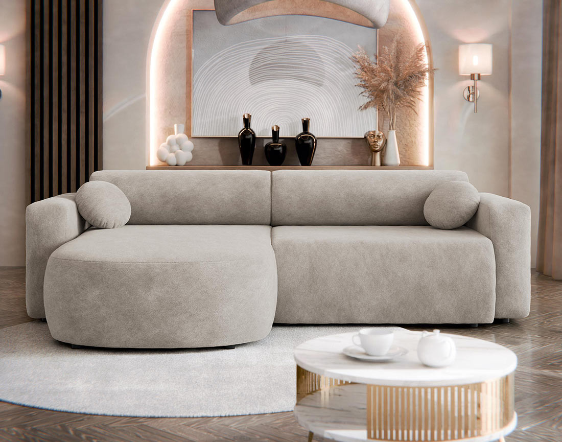 Avec ses lignes arrondies et son design tout en douceur, le canapé d'angle Brunello insuffle une atmosphère chaleureuse et raffinée à votre intérieur. Son tissu délicatement doux au toucher invite à la détente, tandis que ses coussins ronds inclus apportent une note d’élégance et de confort supplémentaire. Pensé pour s’adapter à votre espace, son angle réversible vous permet de moduler votre agencement selon vos envies, pour un salon toujours harmonieux et accueillant.