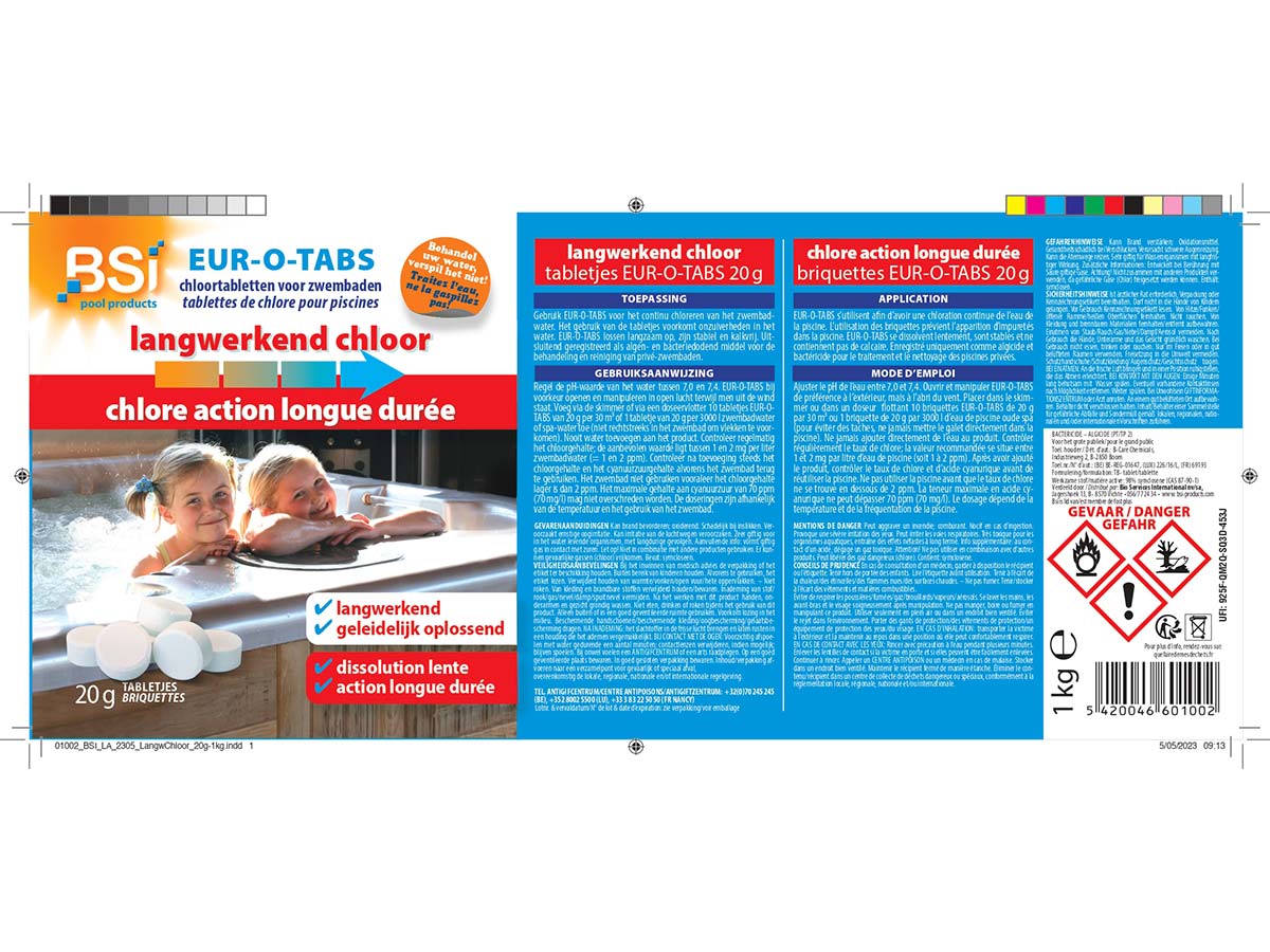 | Libellé | BSI - Chlore Lent - Action Longue Durée - Dissolution Lente - Désinfection - Idéal Pour Piscine Et Spa - Galets 20g - 1Kg |