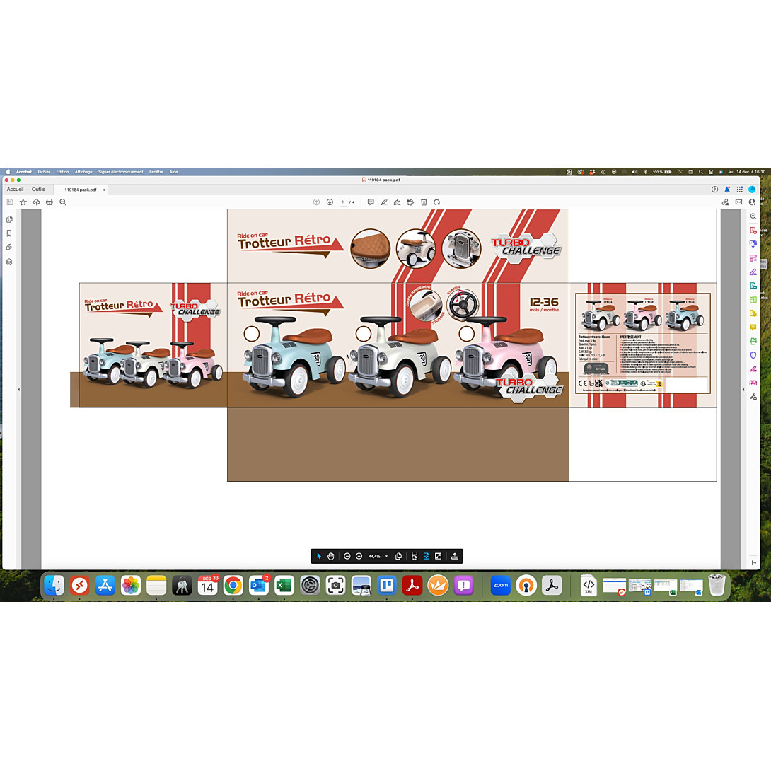 | Avertissements | Avertissement : le poids maximal de l'utilisateur est de 25 kg. le jouet n'est pas conçu pour monter à plusieurs. ne jamais laisser l'enfant sans surveillance, toujours garder l'enfant à portée de vue. à assembler par un adulte. Vérifier régulièrement l'assemblage correct du jouet. ne jamais rouler sur les routes, près d'escaliers, de pentes trop inclinées, de plans d'eau ou de piscines. le jouet doit être utilisé avec précaution de par les qualités d'adresse qu'il requiert afin d'éviter toutes chutes ou collisions susceptibles de blesser l'utilisateur ou des tiers. le port de chaussures fermées est obligatoire lors de l'utilisation du jouet. ne pas utiliser le véhicule en cas d'intempéries (tonnerre, pluie, neige, gel). nous recommandons l'utilisation d'équipements de sécurité tels que casques, coudières... l'entretien : nettoyer le jouet avec un chiffon légèrement humide. Bien sécher après nettoyage. attention. Ne doit pas être utilisé par des enfants de plus de 36 mois à cause d'une résistance insuffisante. lire attentivement la notice d'instructions avant la première utilisation. retirer tous éléments d'emballage avant de donner le jouet à l'enfant. |