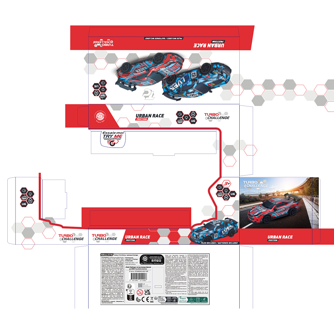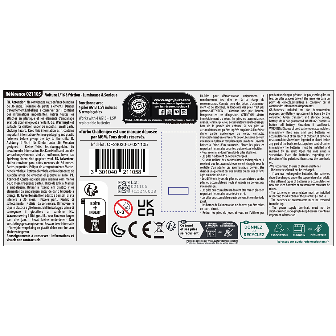 | Libellé | BTE/VOITURE SPORT ECH 1/16 - A FRICTION LUMINEUSE ET SONIQUE APD 4 ANS |