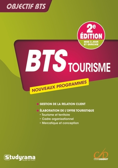 BTS Tourisme Nouveaux programmes ¤ Gestion de la relation client ¤ Élaboration de l'offre touristique ¤ Tourisme et territoire ¤ Cadre organisationnel ¤ Mercatique et conception Complet, efficace et utile ¤ Les connaissances, les méthodes et leurs applications. Le manuel BTS Tourisme, au coeur de la collection Objectif BTS a un unique but : votre réussite. Tout y est utile. Vous trouverez ici la totalité de ce que le Jury d'examen peut vous demander. Rien n'est laissé au hasard et quelques heures de lectures vous permettront de réussir avec succès les épreuves du BTS Tourisme. ¤ Tout avoir sous la main et sous les yeux pour organiser et cadencer votre travail comme vous le souhaitez, à votre rythme. Ce manuel vous permet d'être autonome face aux épreuves de l'examen. ¤ Vous y trouverez : les cours détaillés, les exercices d'applications indispensables et l'ensemble du vocabulaire touristique si précieux pour l'examen comme pour le monde du travail. ¤ Mélanie Chagneau, Alexandra Prudhomme, Laurent Gayard et Michèle Villon, enseignants reconnus et performants au sein des cours Diderot d'Aix-en-Provence, Paris et Montpellier, vous délivrent les clés de la réussite. Véritables coachs de votre apprentissage, ils vous guideront à travers votre travail.