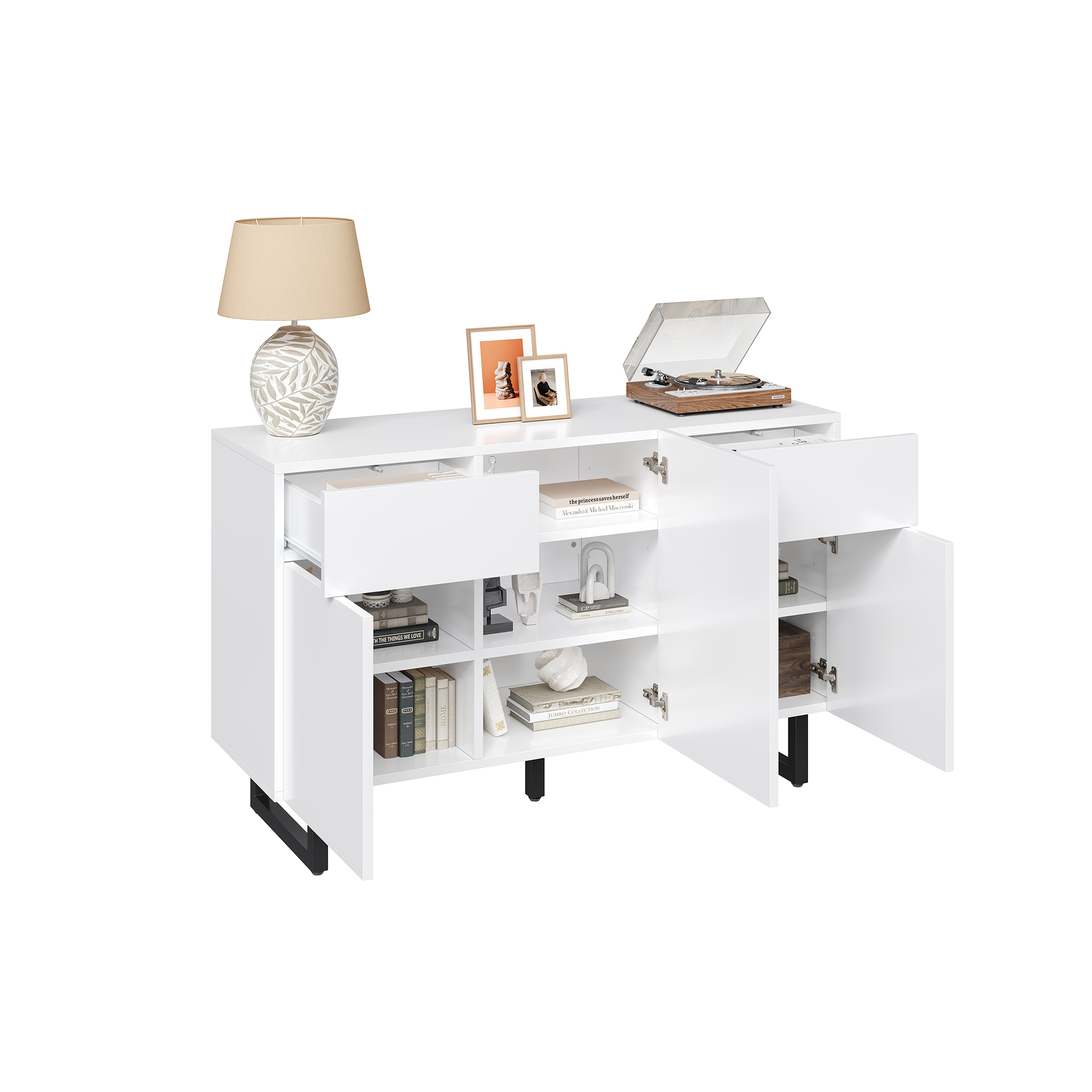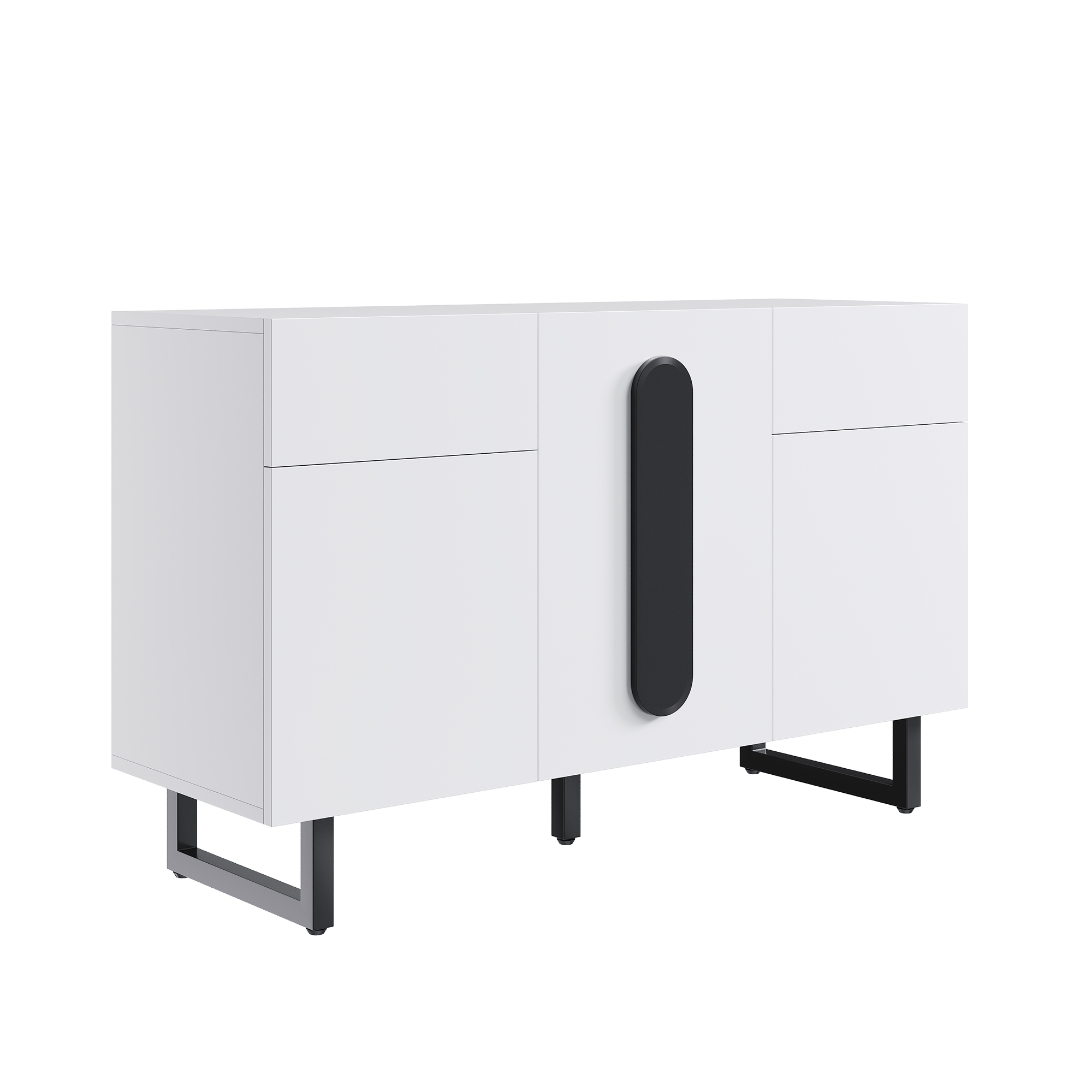 Style et fonctionnalité – Design moderne et minimaliste. L’association du blanc, des poignées noires et des pieds en métal confère au buffet une touche d’élégance et de modernité. Il s’harmonise parfaitement avec les intérieurs de style scandinave et contemporain.