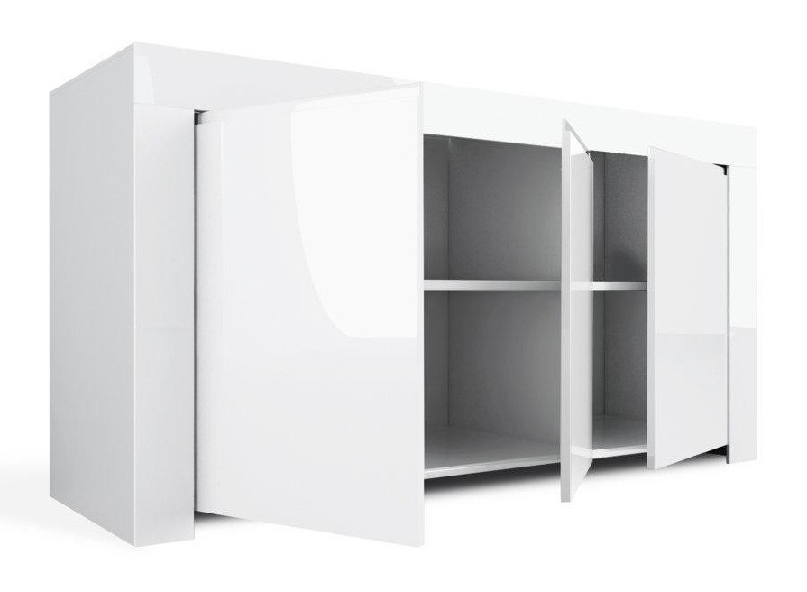 Buffet 3 portes bois laqué blanc brillant Ambre L 162cm