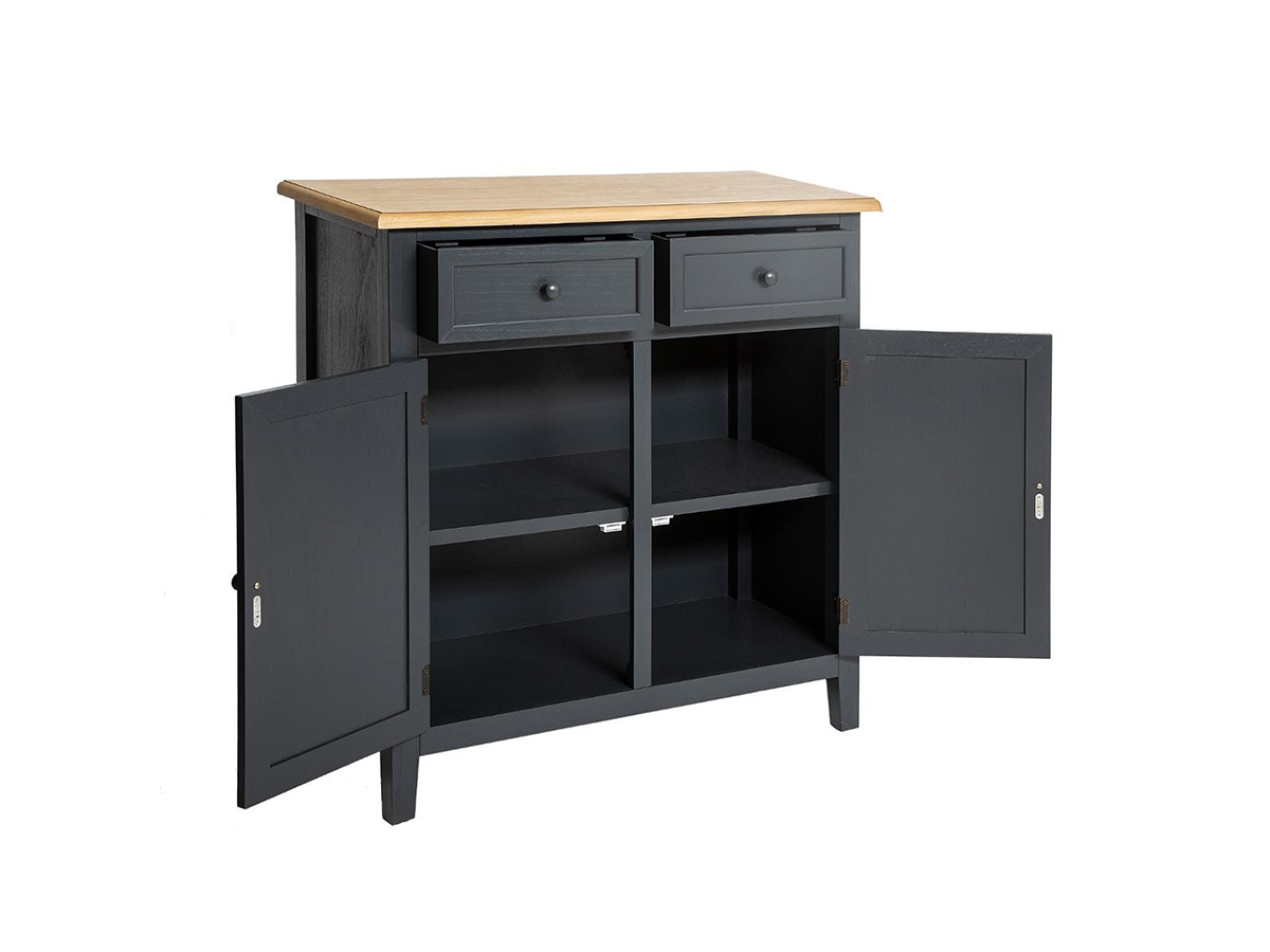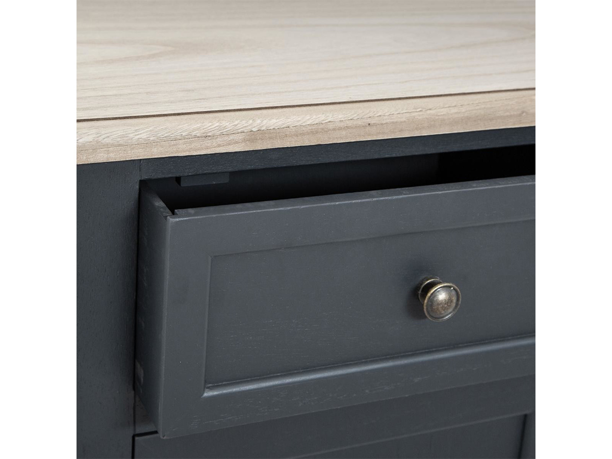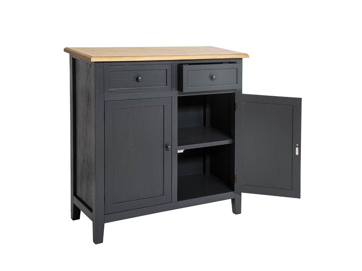 Pour ponctuer votre salle-à-manger d'une touche romantique, rien de tel que le Buffet "Atelier d'Hiver" Damian d'Atmosphera. Un meuble authentique qui amènera un véritable caractère à la pièce. Sa teinte gris foncé discrète vous permettra de le placer sans difficulté dans votre décoration. Vous allez apprécier sa conception en bois de Pauwlonia et MDF - Panneau de fibres de bois pour un total de 14,7 kg. Ce beau meuble trouvera sa place chez vous moyennant une place L 80 x l 34,5 x H 85 cm, et des affaires à lui confier !À monter soi même : NonCouleur : Gris foncéDimensions (L x l x H) : 80 x 34,5 x 85 cmMarque : ATMOSPHERAMatière de la structure : Bois de Pauwlonia & MDF - Panneau de fibres de boisNombre de portes : 2Nombre de tiroirs : 2Poids : 14,7 kgUnivers : Romantique