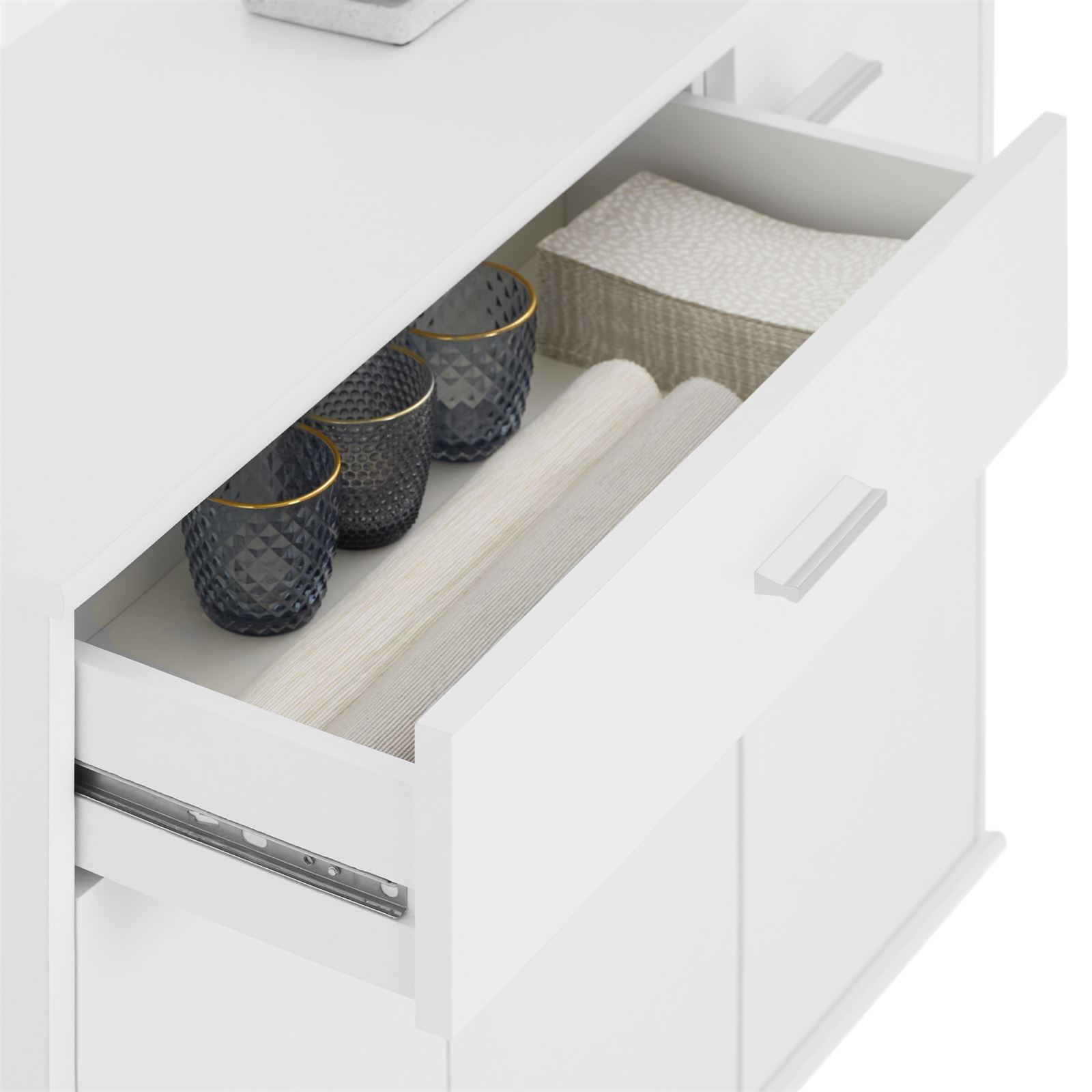 Buffet CORALINE, commode meuble de rangement avec 1 tiroir et 3 portes, en mélaminé blanc mat