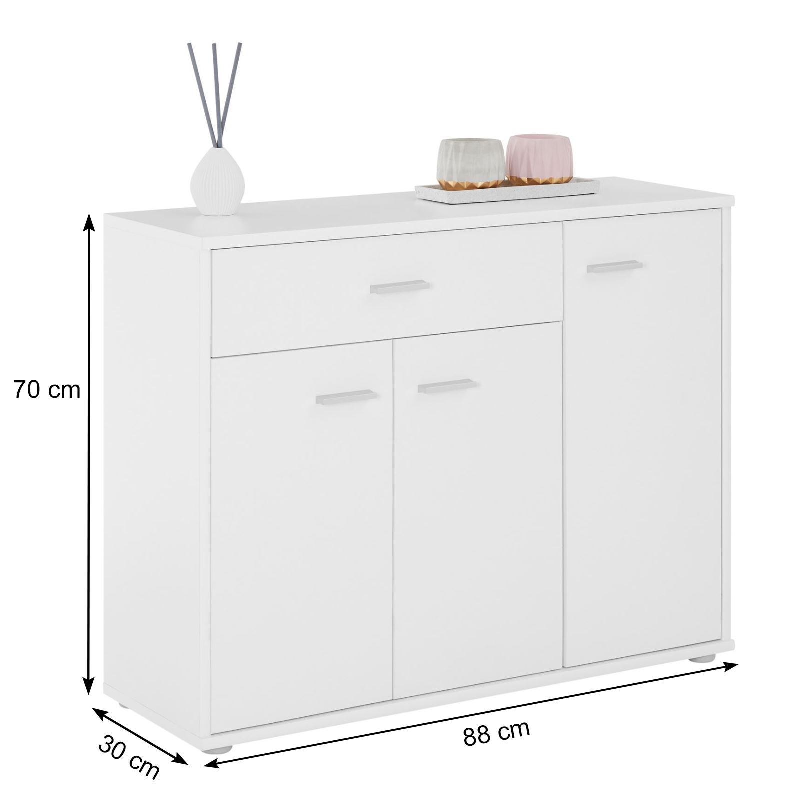 | Libellé | Buffet CORALINE, commode meuble de rangement avec 1 tiroir et 3 portes, en mélaminé blanc mat |