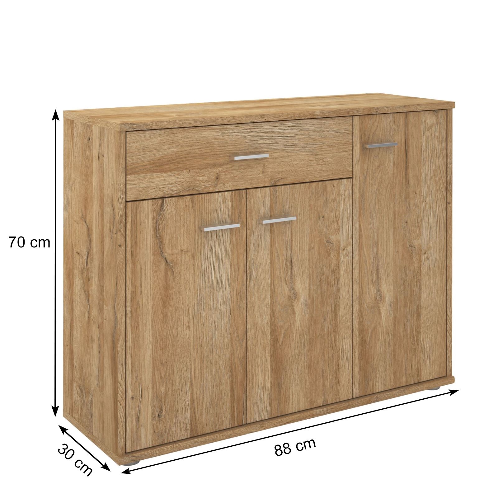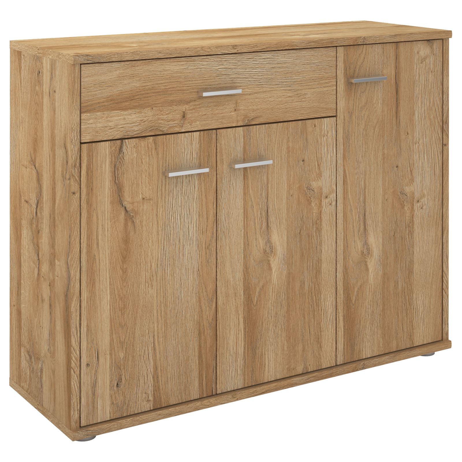 Buffet CORALINE, commode meuble de rangement avec 1 tiroir et 3 portes, en mélaminé décor chêne sauvage