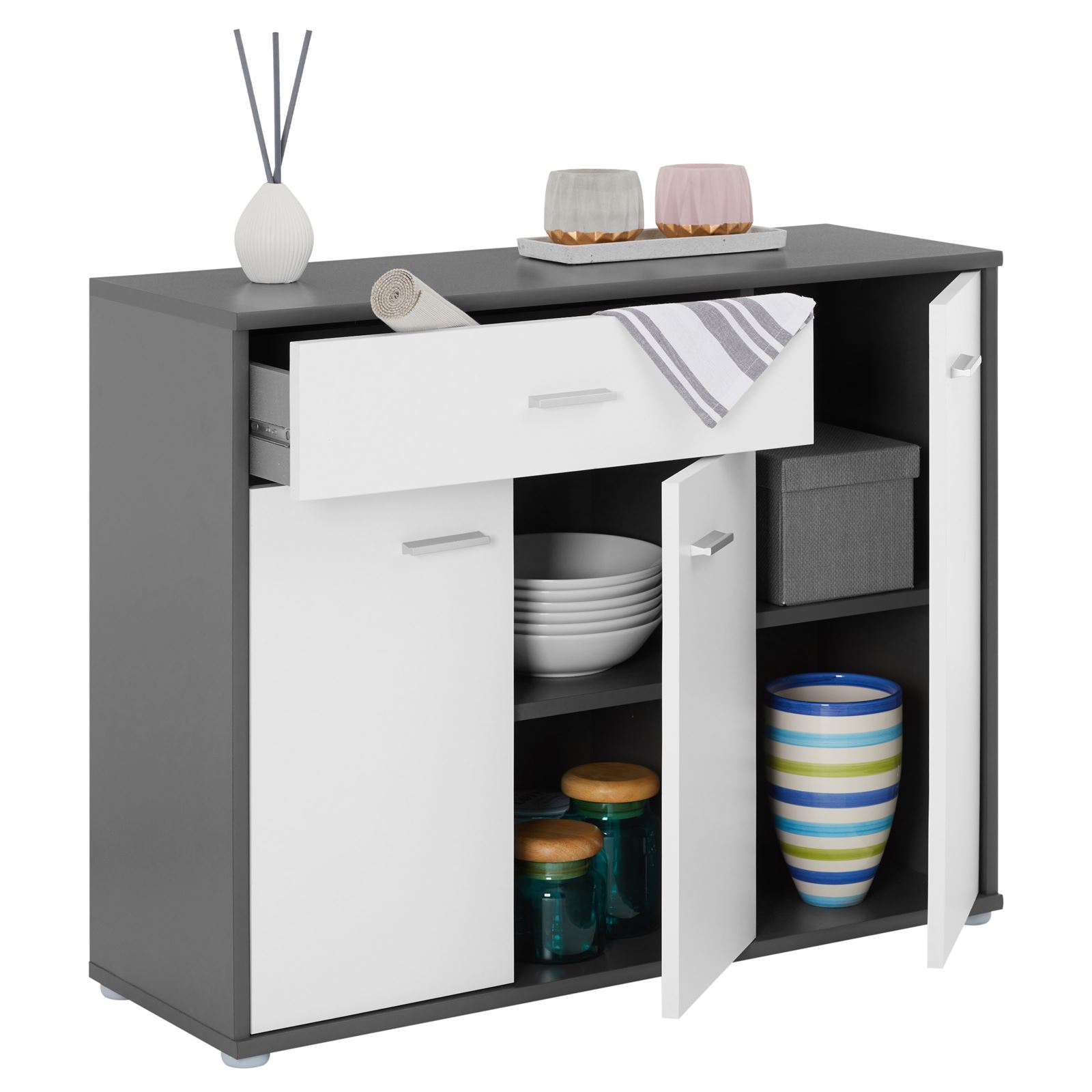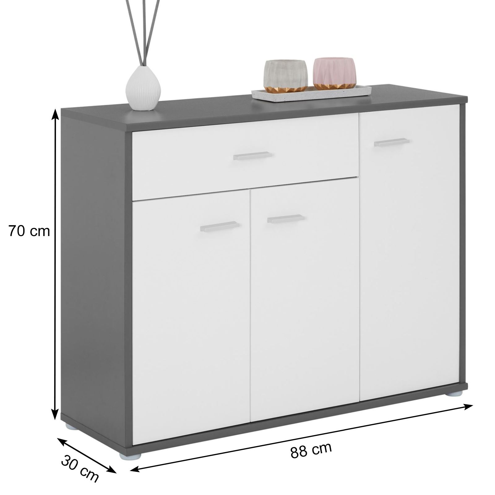 | Libellé | Buffet CORALINE, commode meuble de rangement avec 1 tiroir et 3 portes, en mélaminé gris mat et blanc mat |