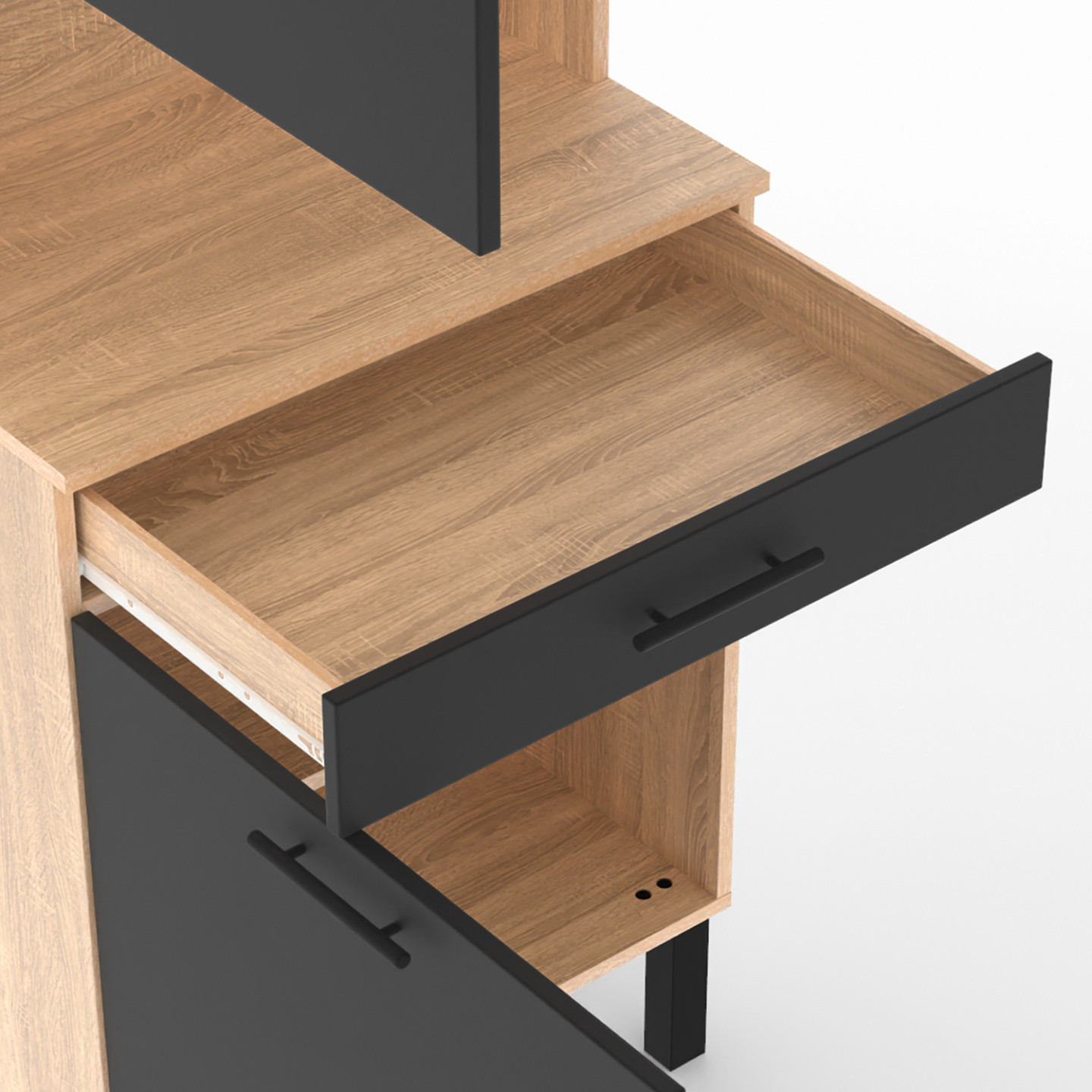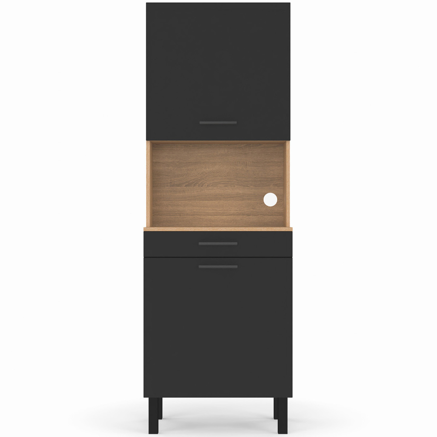 | Libellé | Buffet de cuisine CINA 60 CM avec 2 portes, 1 tiroir et niche pour micro-ondes en bois façon hêtre et noir |