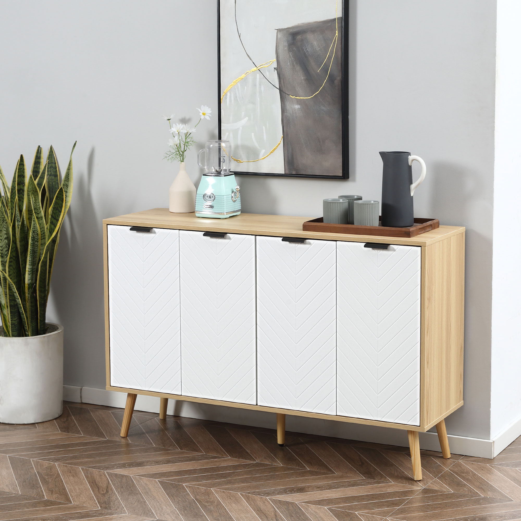 | Libellé | Buffet design scandinave 4 portes 2 étagères piètement bois de pin panneaux portes motif chevrons blanc aspect bois clair |