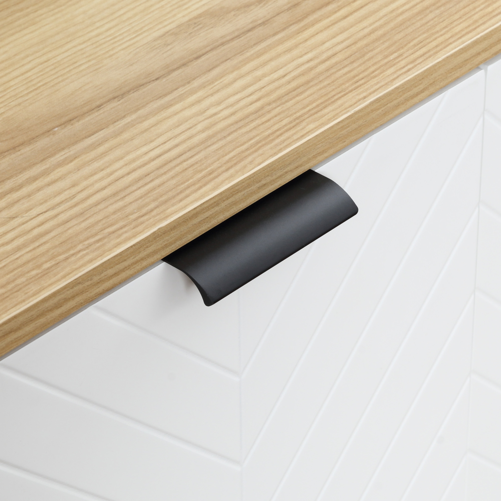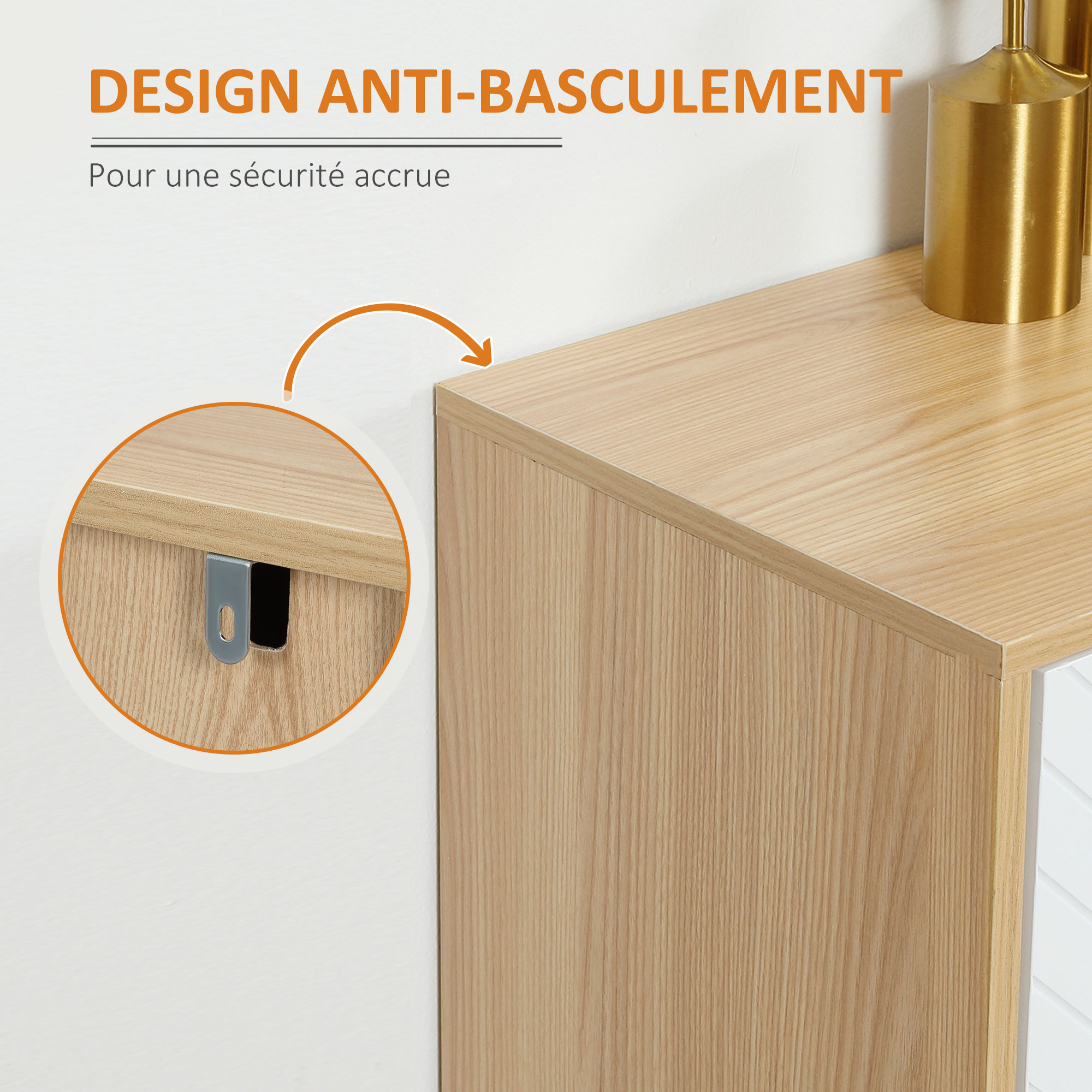 - Jolie finition : poignées de porte en métal noir, portes avec charnières acier, piètement bois doté de patins antidérapants, dispositif anti-basculement intégré