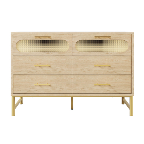 Buffet en rotin avec 6 tiroirs, pour salon et chambre, poignées en métal, 120 x 40 x 74 cm