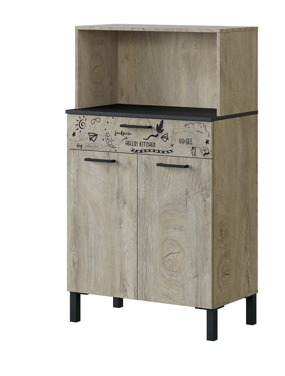 | Libellé | Buffet meuble de rangement de cuisine coloris gris anthracite/chêne à nœuds avec impression digitale -H126 x L72 x P40cm |