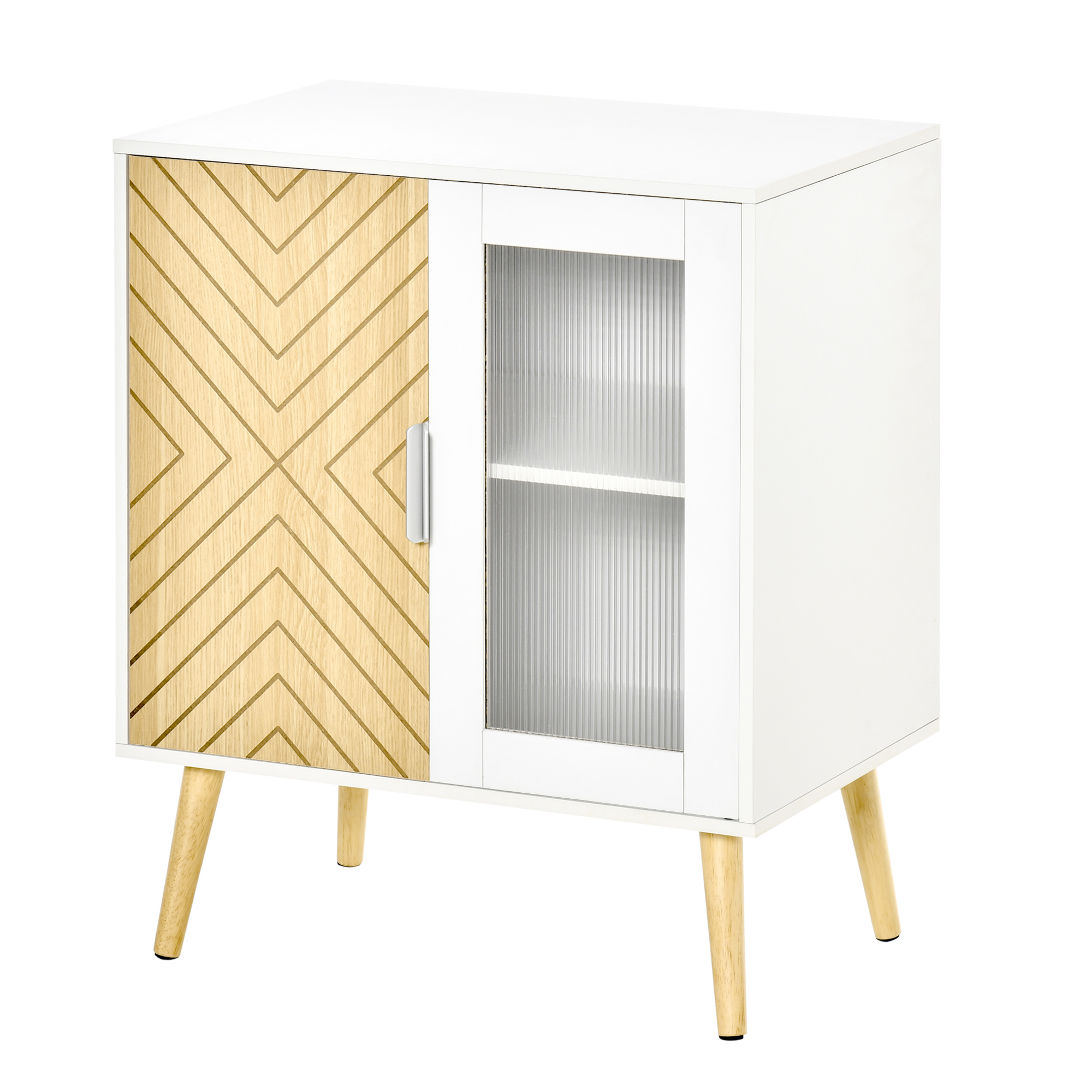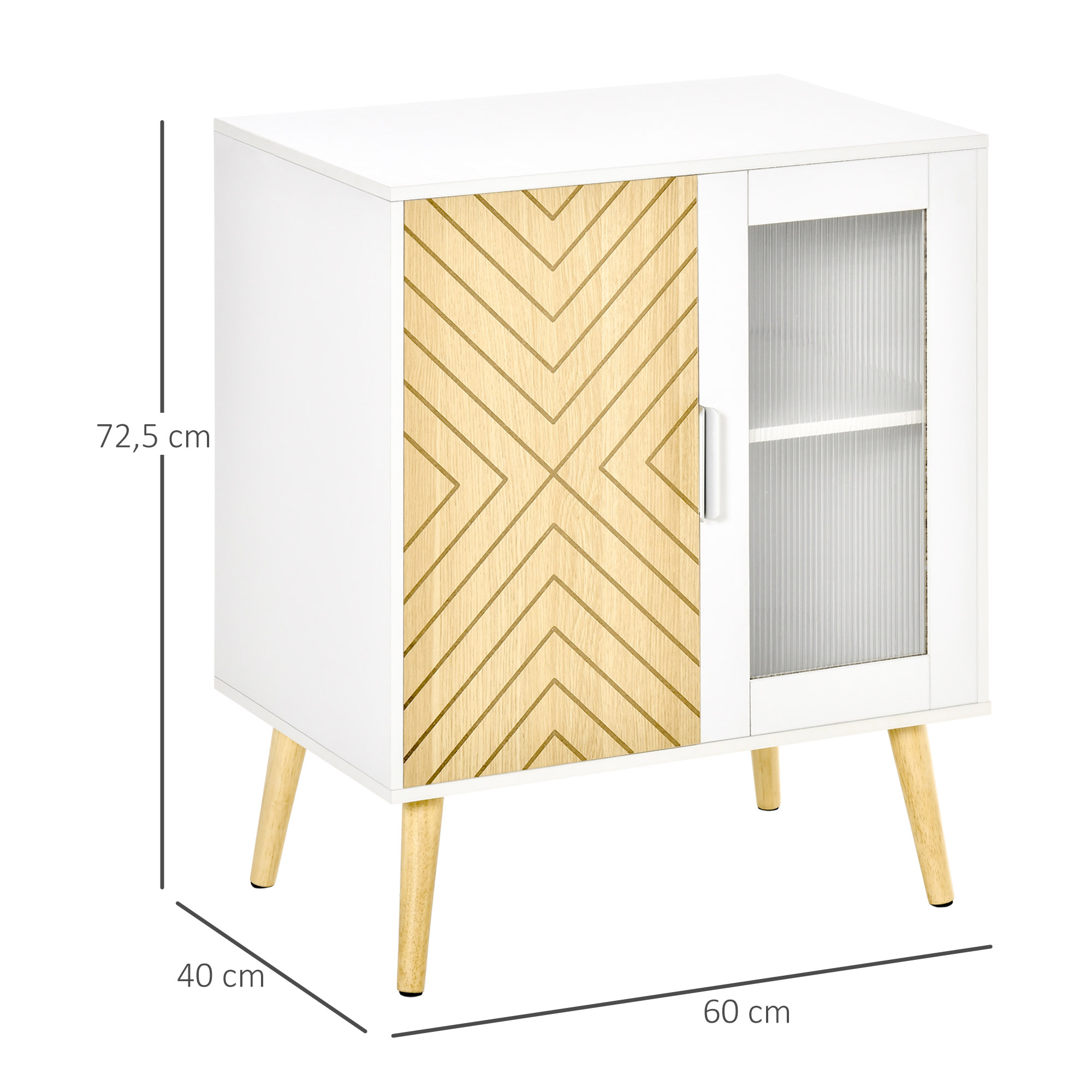 Ajoutez une touche chaleureuse scandinave à votre intérieur en intégrant ce magnifique petit buffet bicolore blanc et aspect bois clair avec motif graphique. Equipé d'un placard 2 portes avec étagère réglable en hauteur, vous pourrez y ranger de nombreuses affaires.