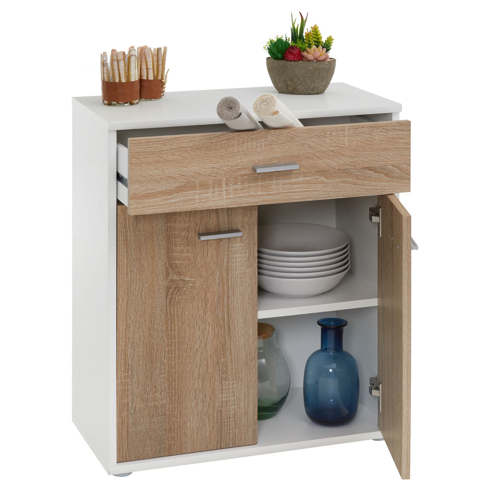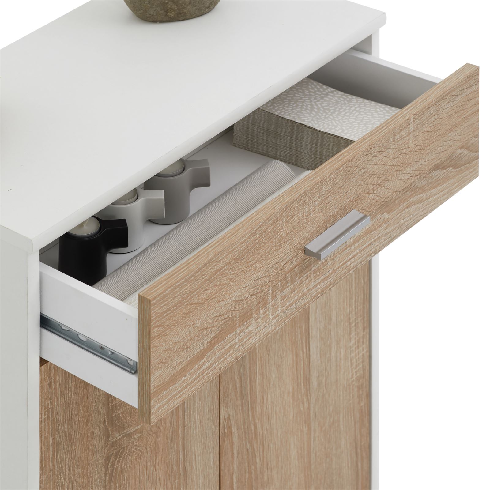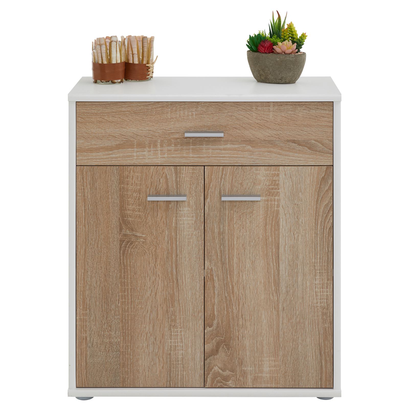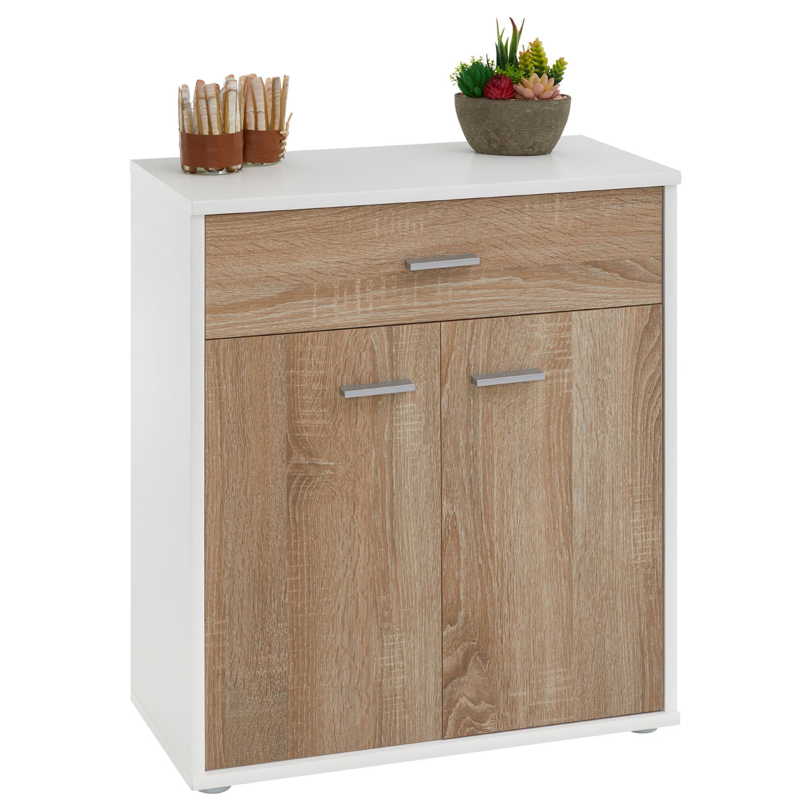 | Libellé | Buffet MONACO, commode meuble de rangement avec 1 tiroir et 2 portes, en mélaminé blanc mat et décor chêne sonoma |