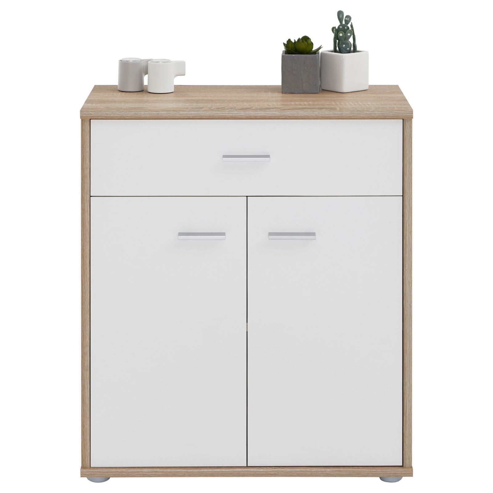 Buffet MONACO, commode meuble de rangement avec 1 tiroir et 2 portes, en mélaminé décor chêne sonoma et b