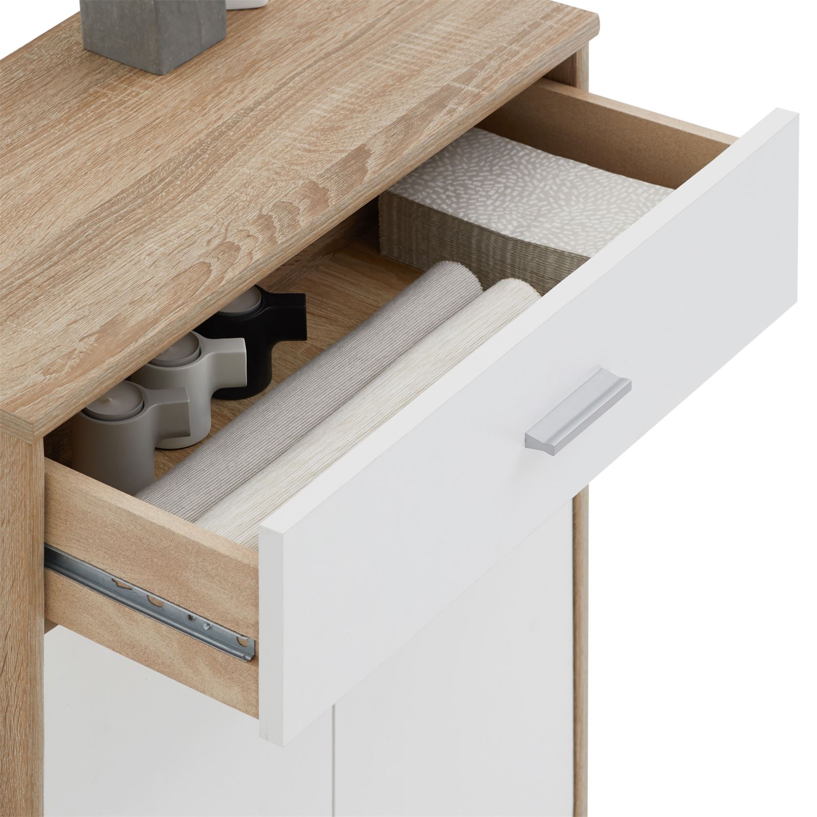 | Libellé | Buffet MONACO, commode meuble de rangement avec 1 tiroir et 2 portes, en mélaminé décor chêne sonoma et blanc mat |