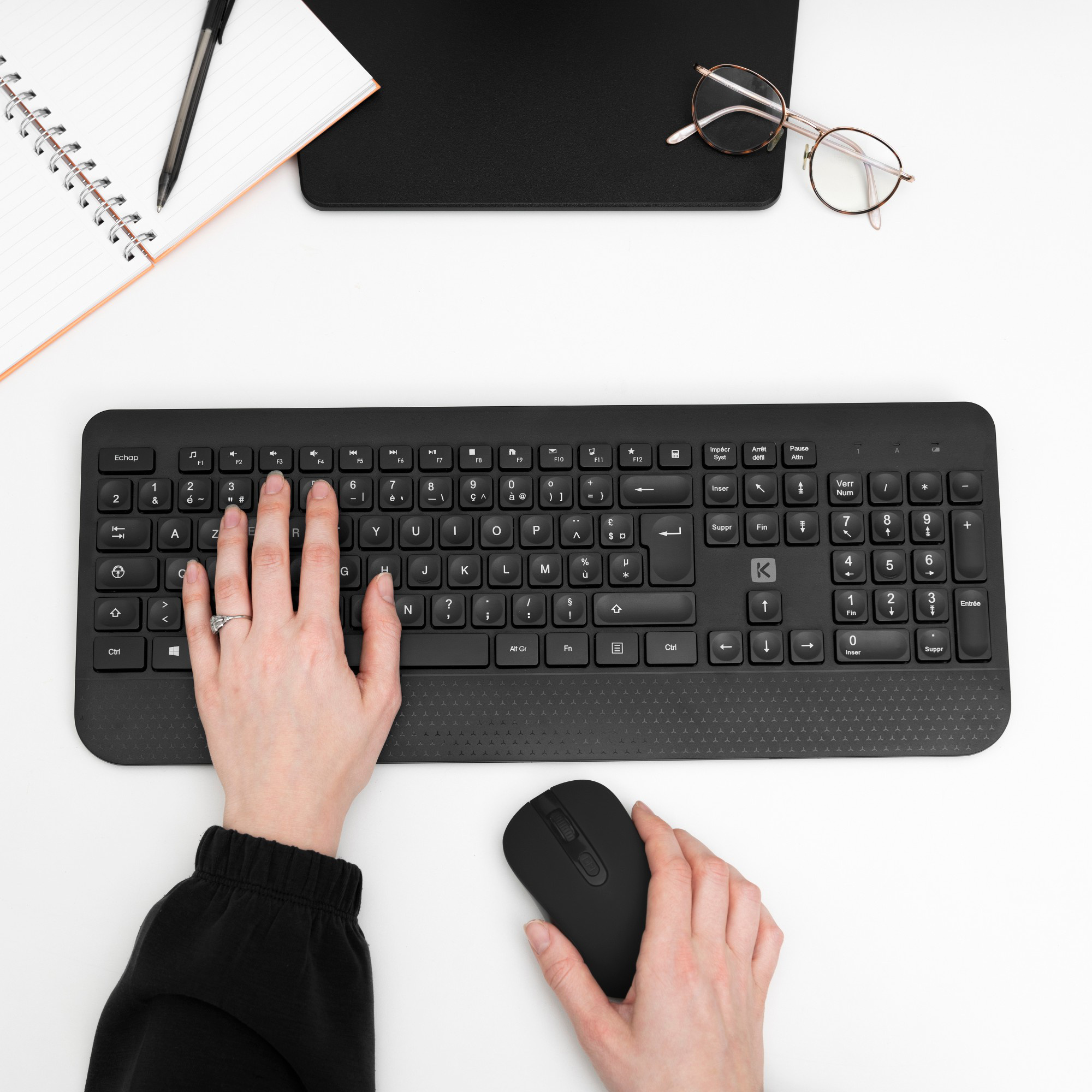 Bundle clavier/souris sans fil Noir - Ensmeble clavier + souris sans fil - Finition soft-touch "