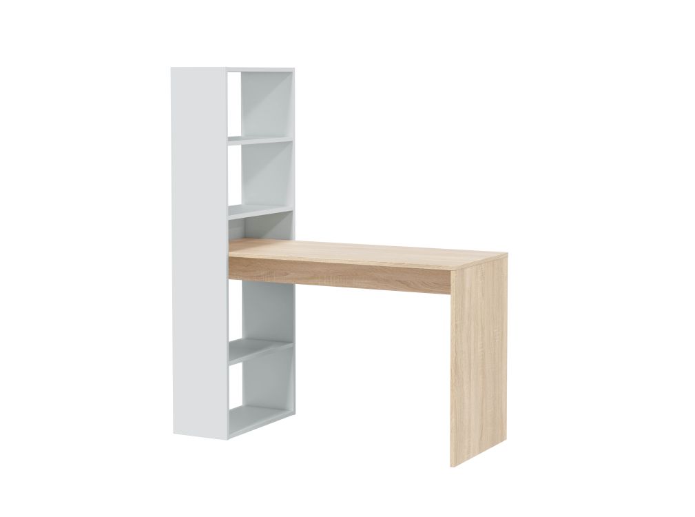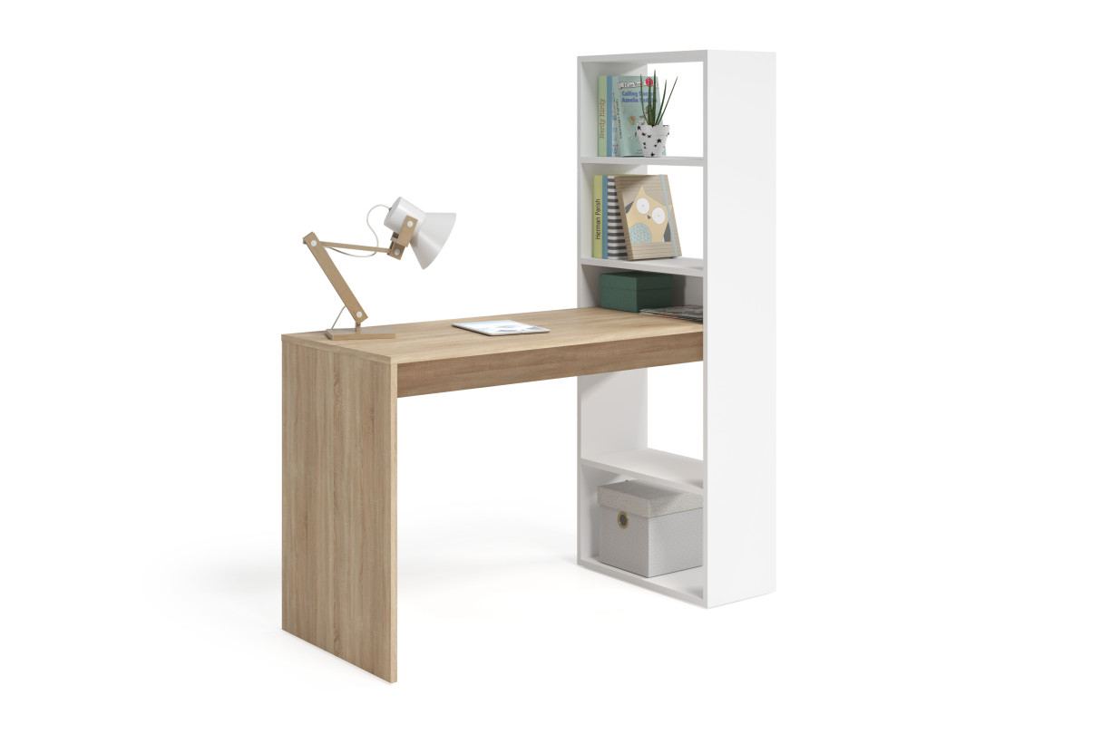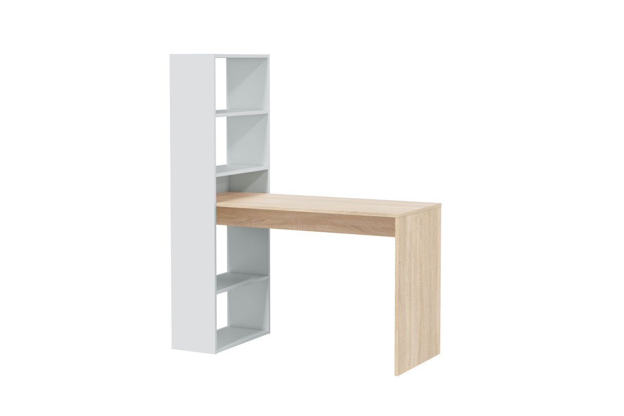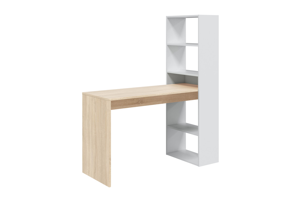 | Libellé | Bureau ADELE avec étagère de rangement réversible intégrée L120cm X P53cm X H144cm - Blanc et Bois |