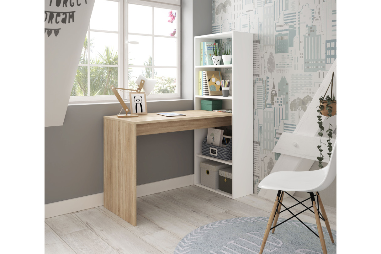 Le bureau ADELE est un de nos best-sellers pour son côté pratique. En effet, outre le large plan de travail qu'il vous offre, il dispose de nombreux rangements grâce à son étagère réversible intégrée. Vous pouvez y ranger vos boîtes de rangement, vos livres mais aussi vos objets de décoration pour personnaliser votre coin bureau à votre goût. Dans votre maison, le bureau ADELE se mariera très bien avec des décorations modernes ou des ambiances scandinaves.