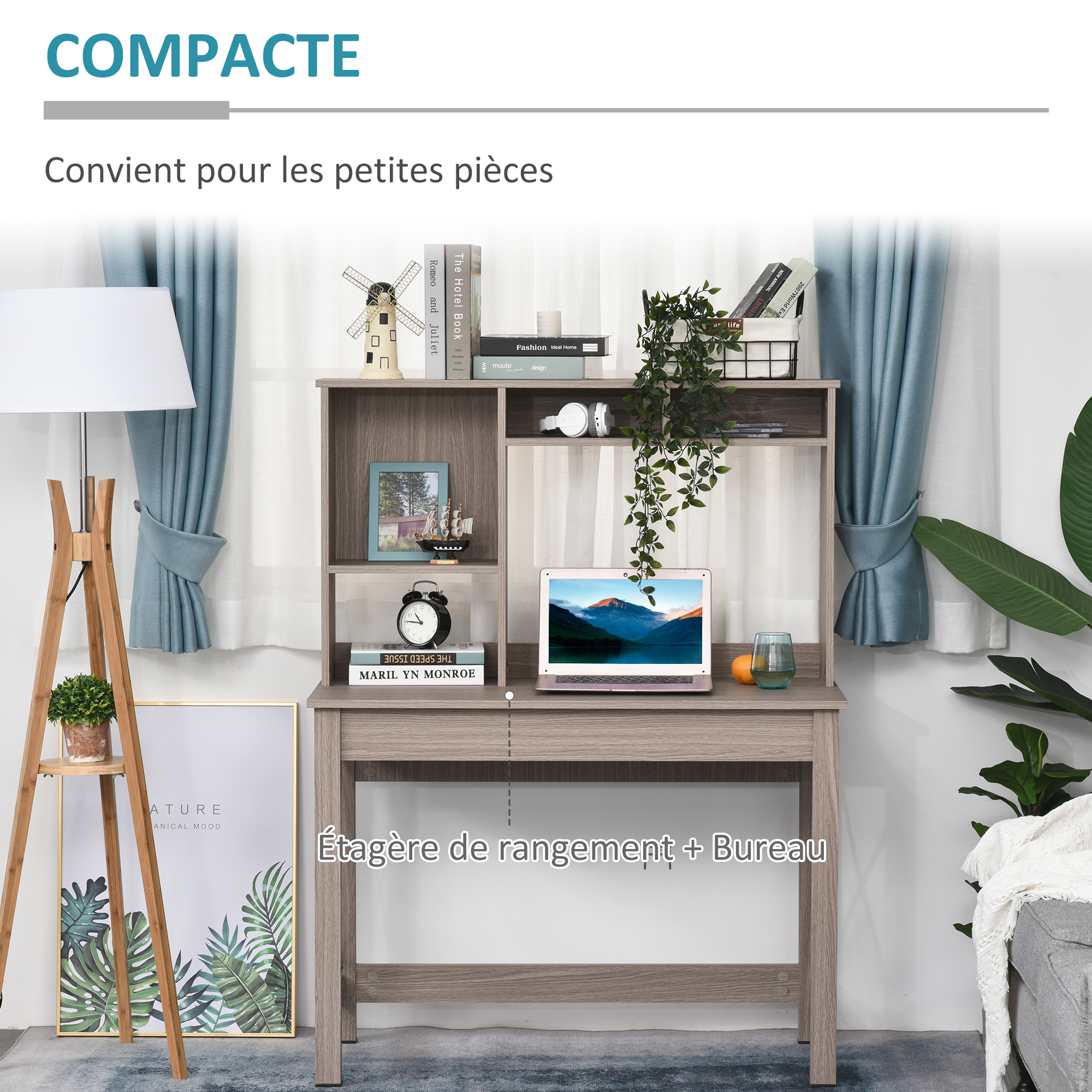 Bureau bibliothèque 2 en 1 - 3 niches 4 espaces de rangement - panneaux particules aspect bois marron cla