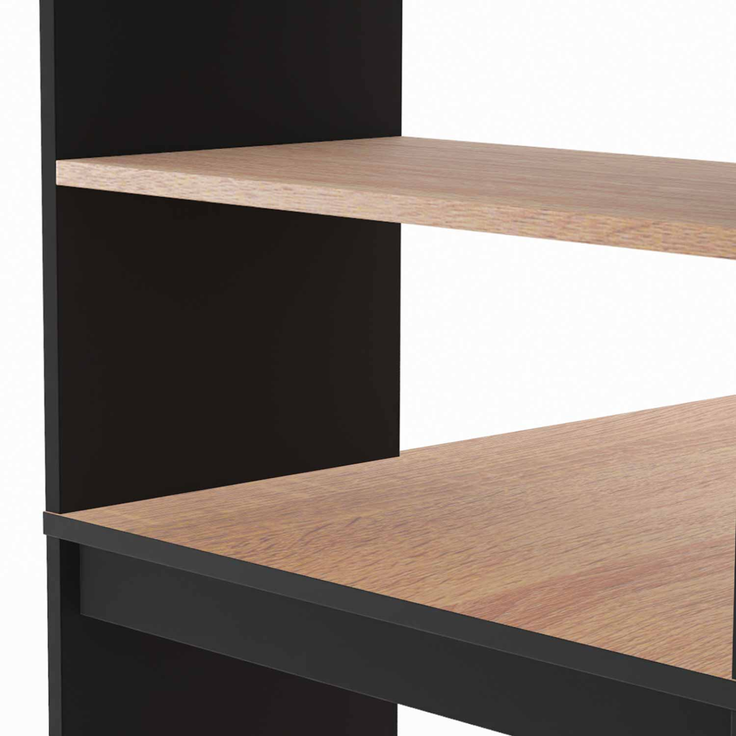 Bureau bibliothèque BEN en bois façon hêtre et noir avec rangements ouverts et étagère bibliothèque