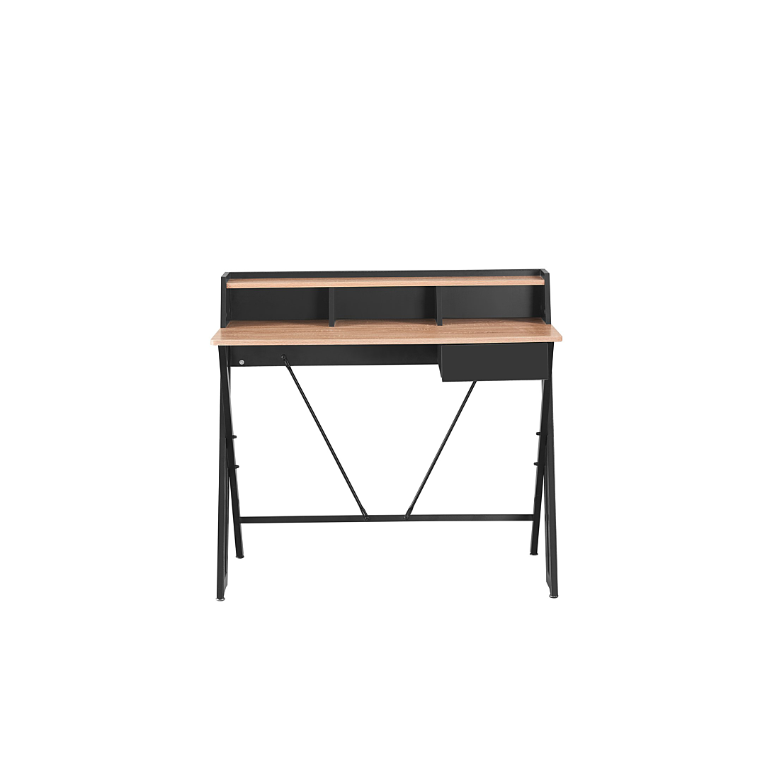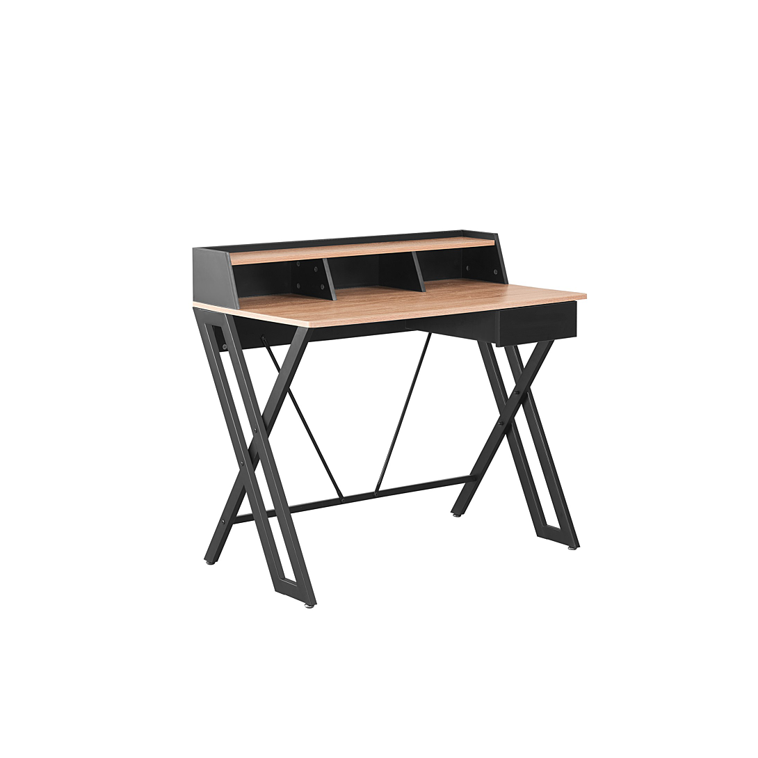 Bureau BOOST bicolore couleur bois et noir avec 1 tiroir et des rangements.