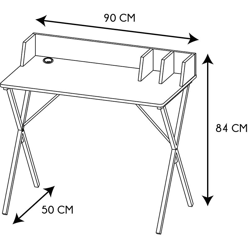 Ce bureau épuré sera parfait pour organiser un espace de travail efficace et peu encombrant. - Design industriel - Dimensions : 90x84x50 cm - Composition : Métal Acier inoxydable - Plastique Mélamine