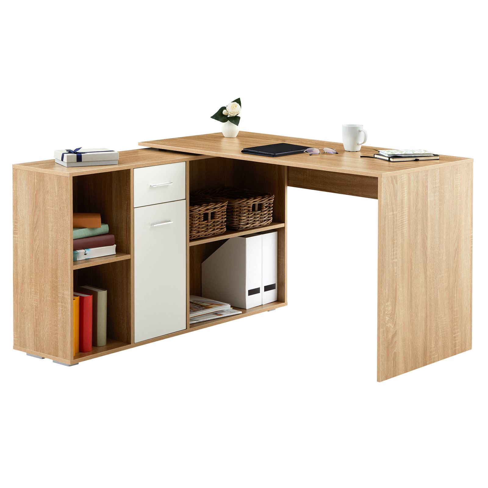 | Libellé | Bureau d'angle CARMEN table avec meuble de rangement intégré 4 étagères 1 porte et 1 tiroir, décor chêne sauvage/blanc |