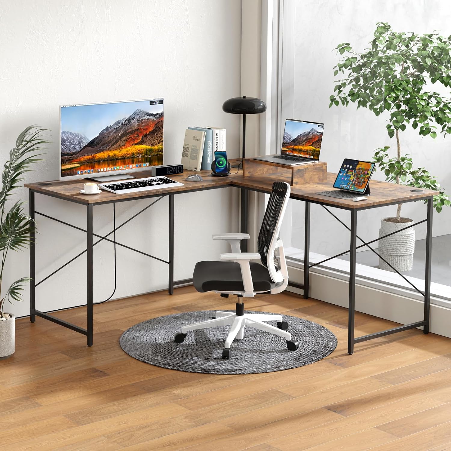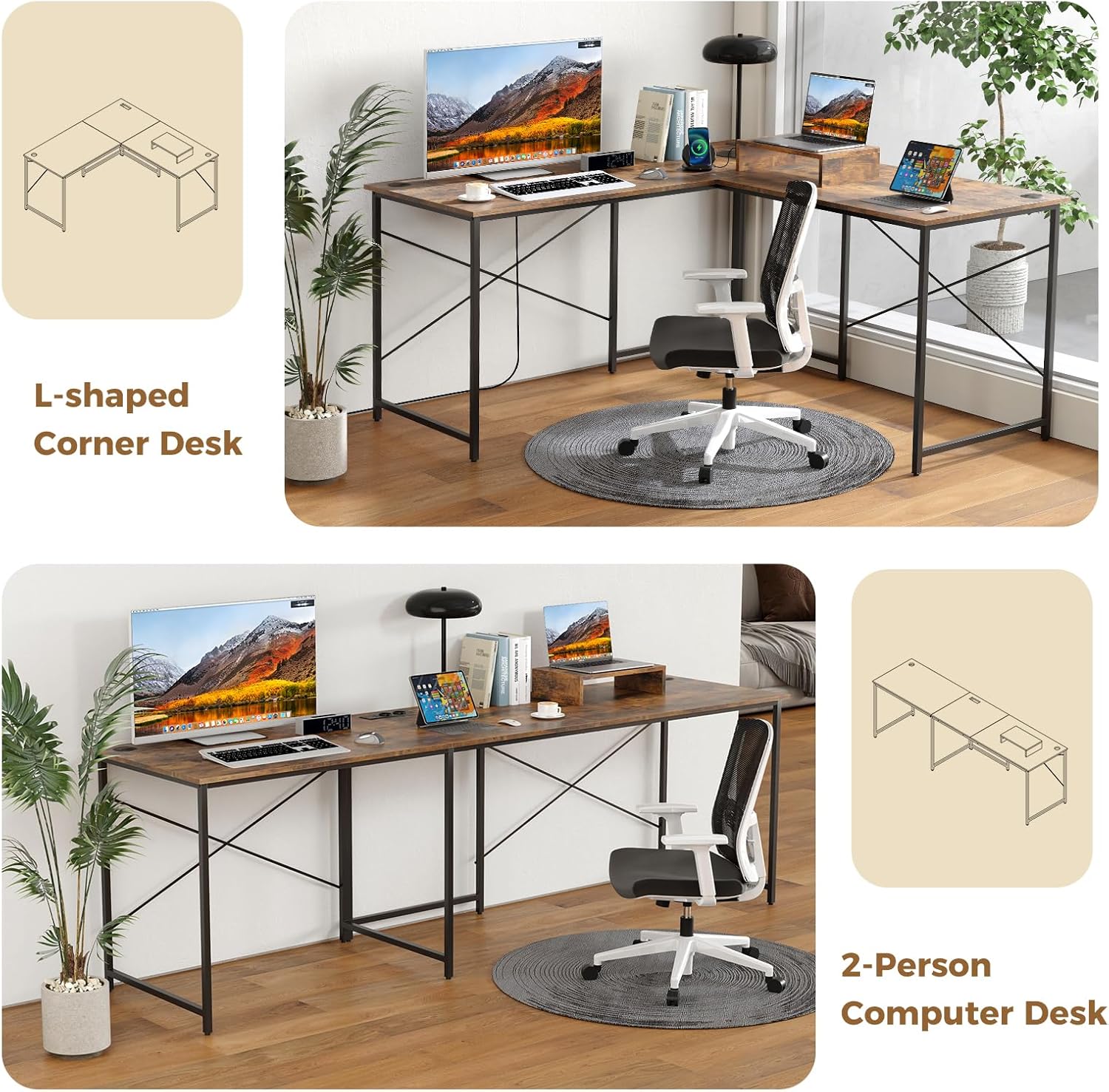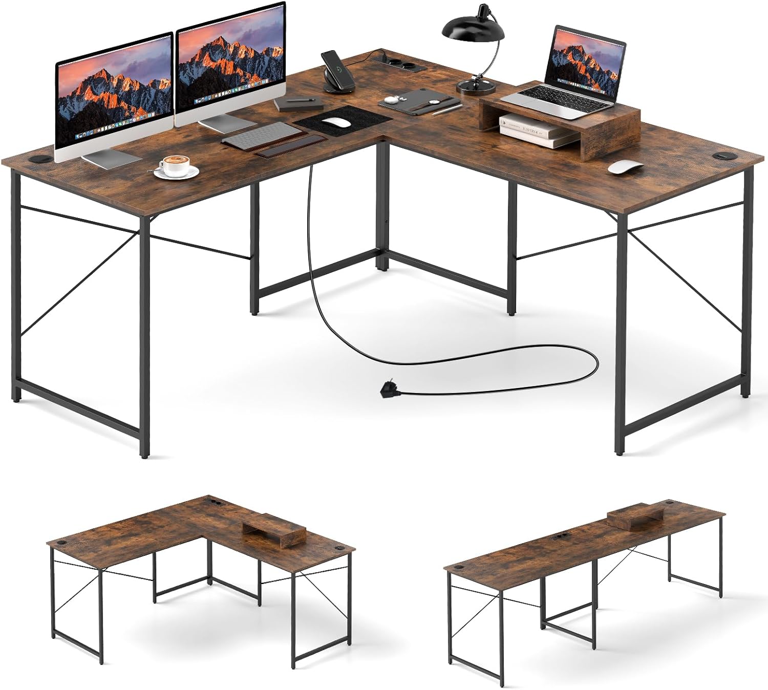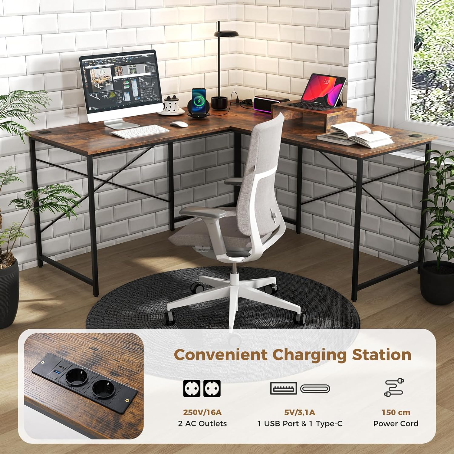 - Prise Intégrée - Le bureau d'angle en forme de L est équipé de 2 prises AC, 1 port USB et 1 port Type-C pour alimenter vos appareils tels que des ordinateurs, imprimantes, téléphones et tablettes. C’est une solution pratique pour charger vos équipements à portée de main.