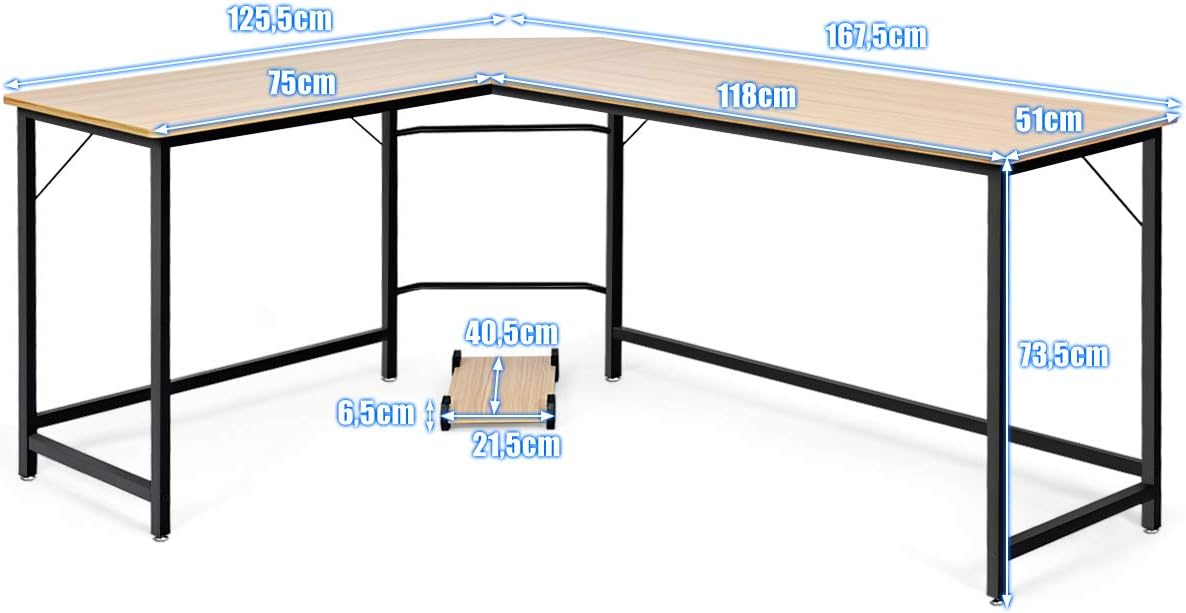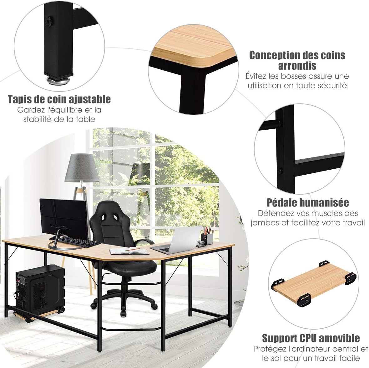 - Grand Espace : Avec une grande surface presque 243×51 cm, notre bureau d'angle vous offre assez d'espace pour ranger les articles de travaux ou les équipements de jeu, vous apportant une espace plus ordonnée.
