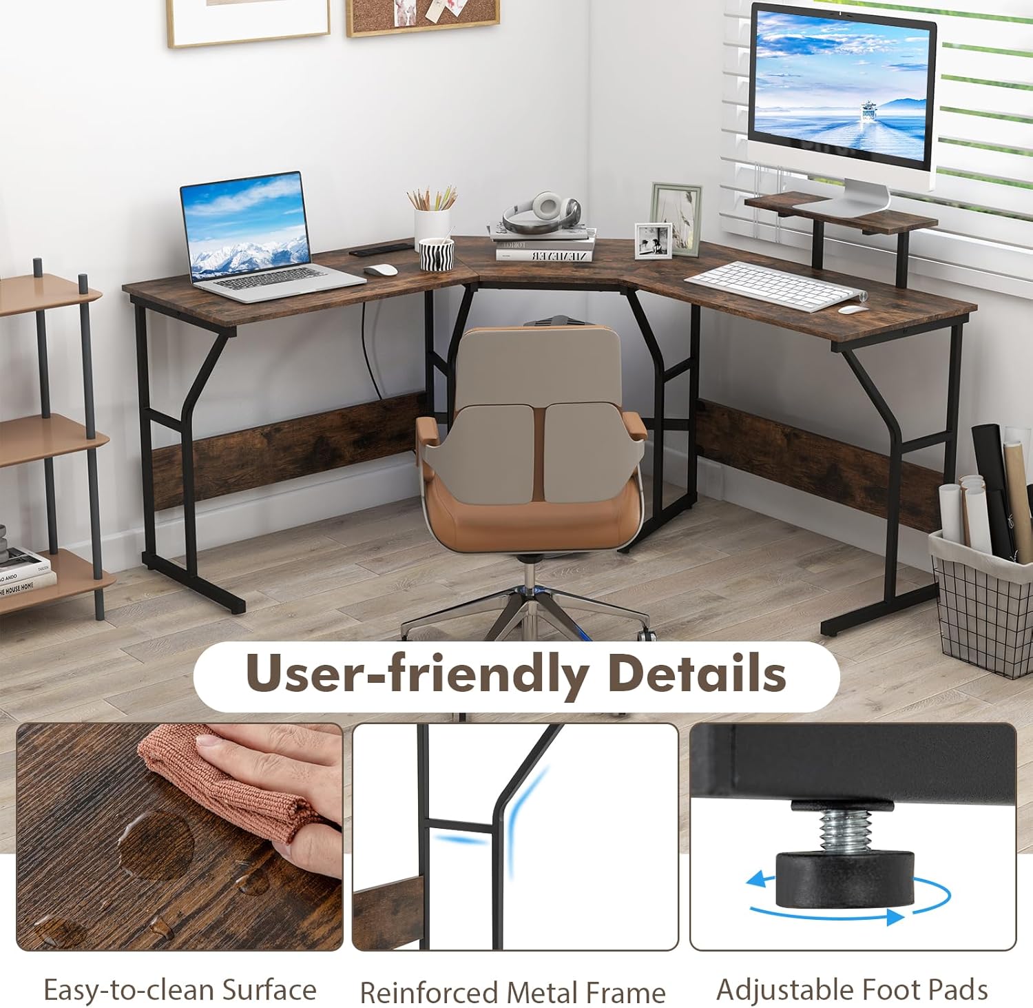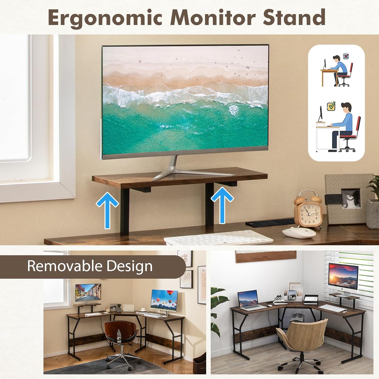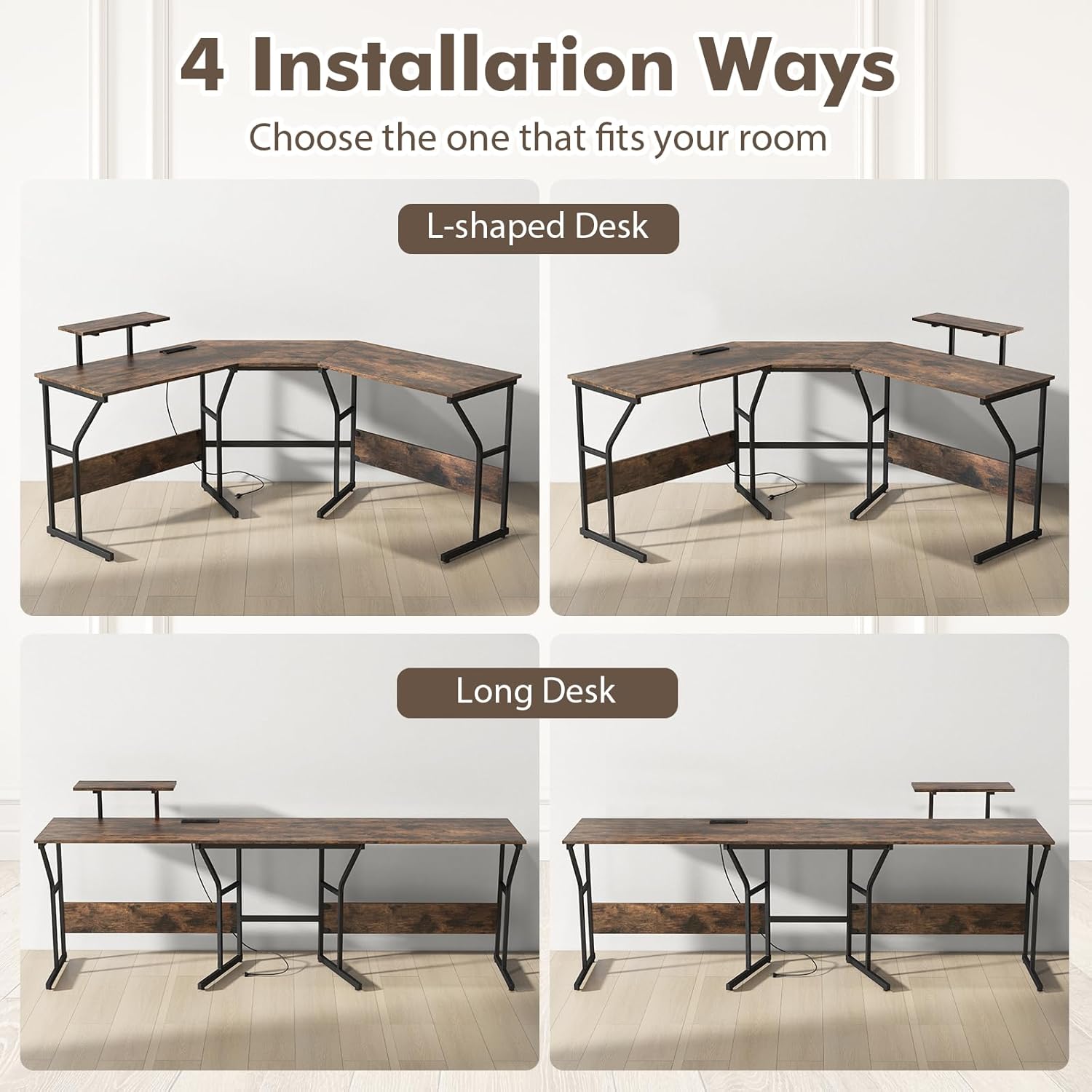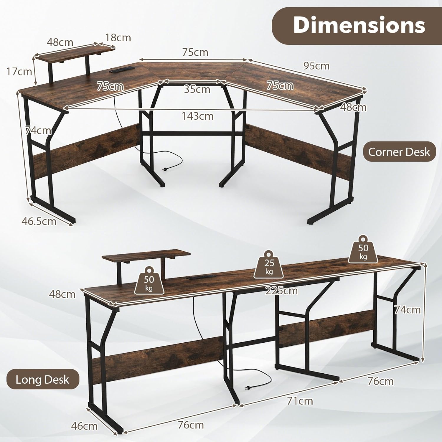 - Options d'installation flexibles : ce bureau en forme de L peut être facilement ajusté pour être utilisé comme bureau d'angle ou s'étend à une longueur de 225 cm pour accueillir des sièges doubles, idéal pour diverses pièces. En outre, le support d'écran peut être installé à gauche ou à droite.