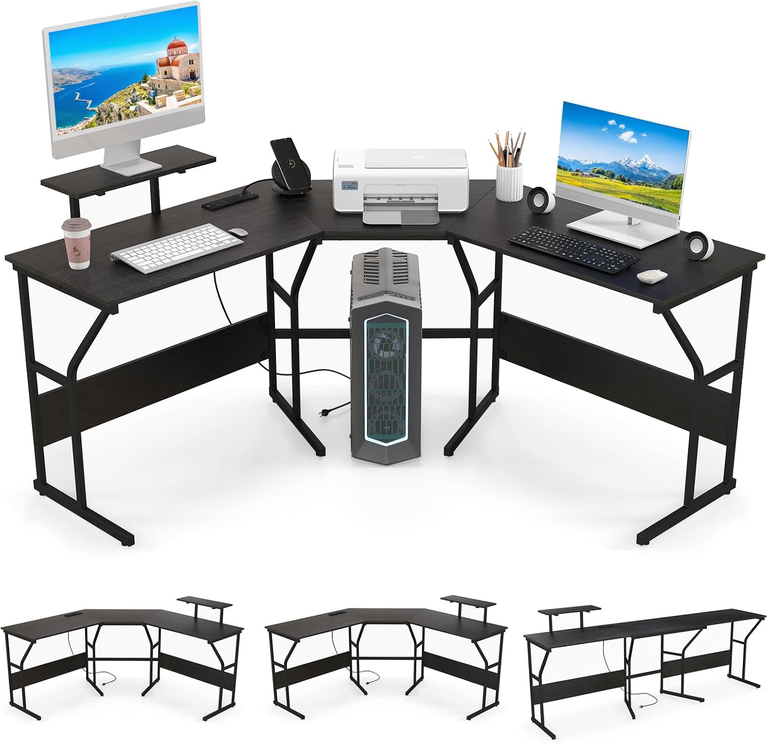 | Libellé | Bureau d'angle transformable en l,avec ports de charge et prises, bureau avec étagère pour moniteur noir |