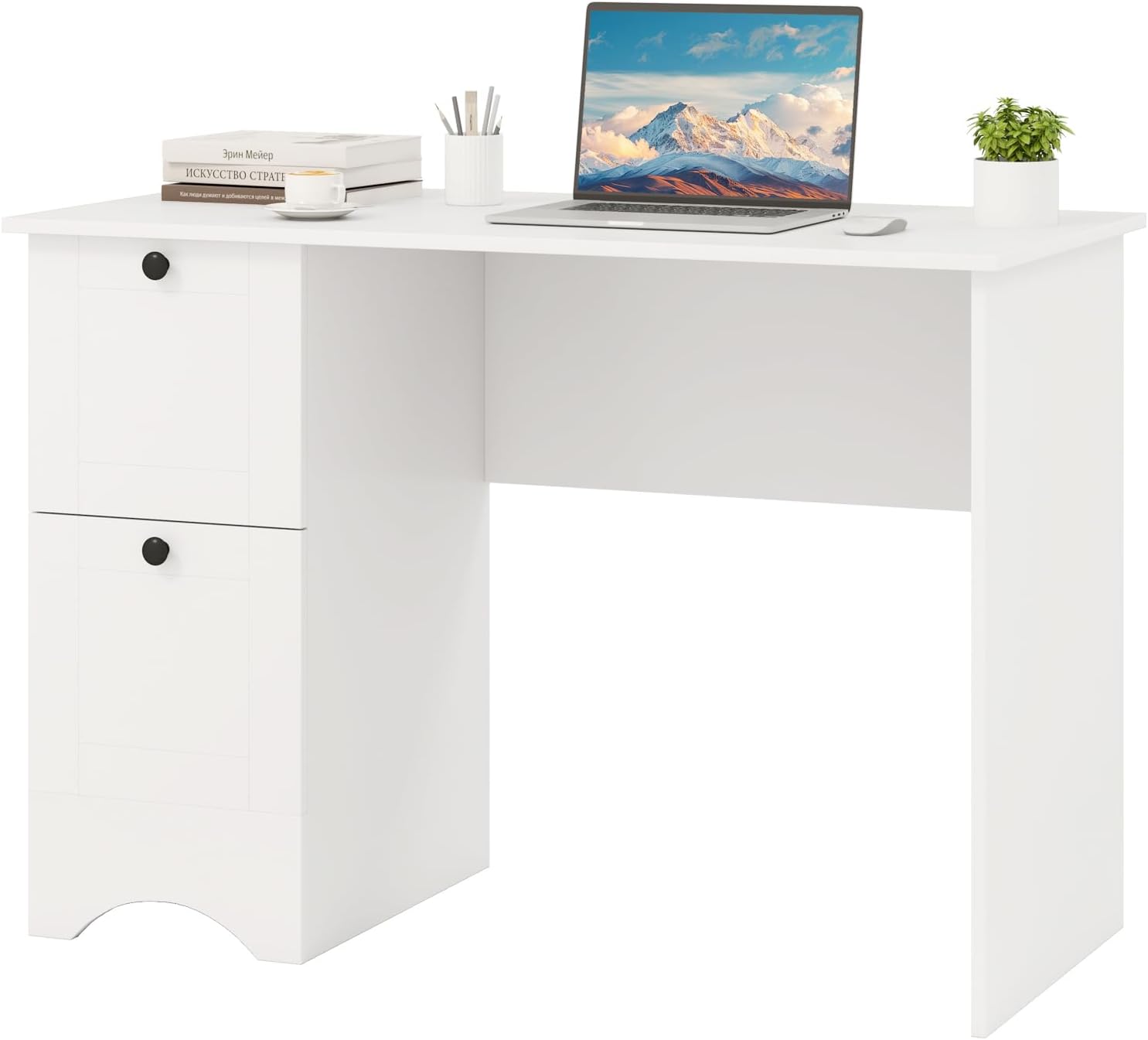 Bureau d'ordinateur en bois avec 2 tiroirs de rangement table de travail peu encombrante,chambre blanc