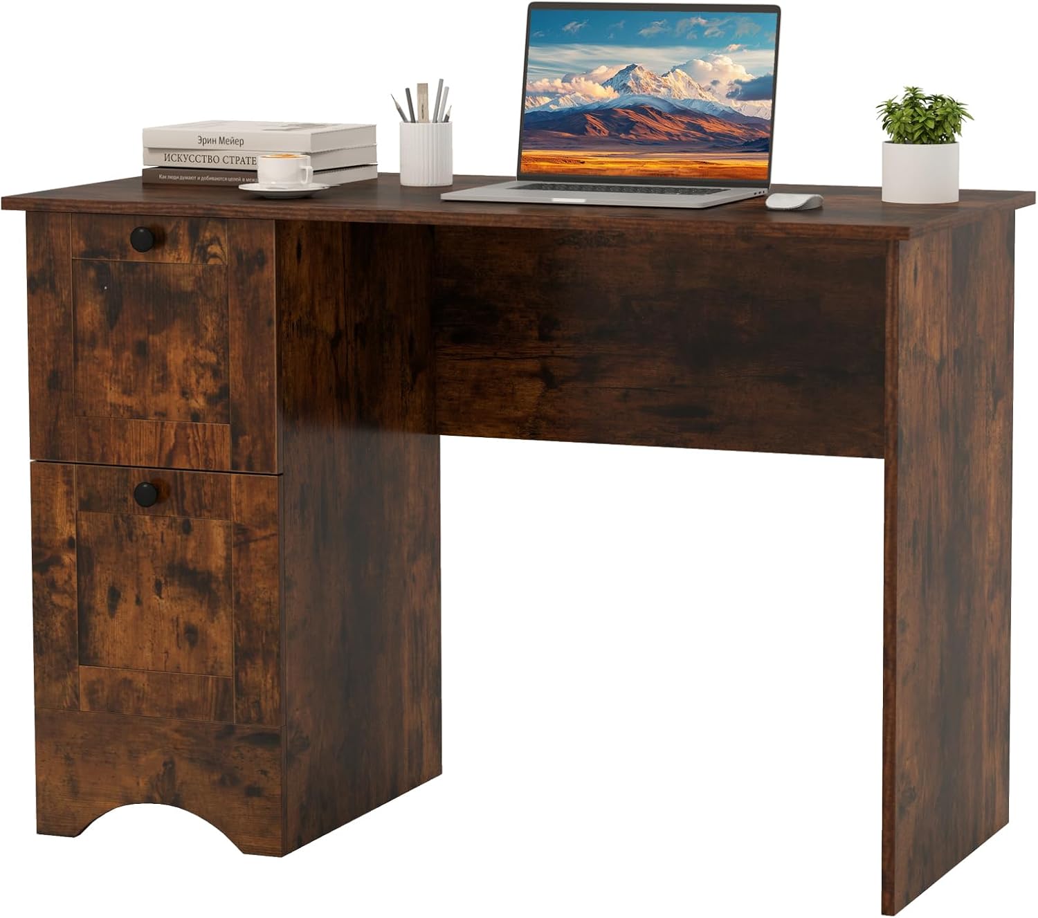 | Libellé | Bureau d'ordinateur en bois avec 2 tiroirs de rangement,table de travail peu encombrante, marron rustique |