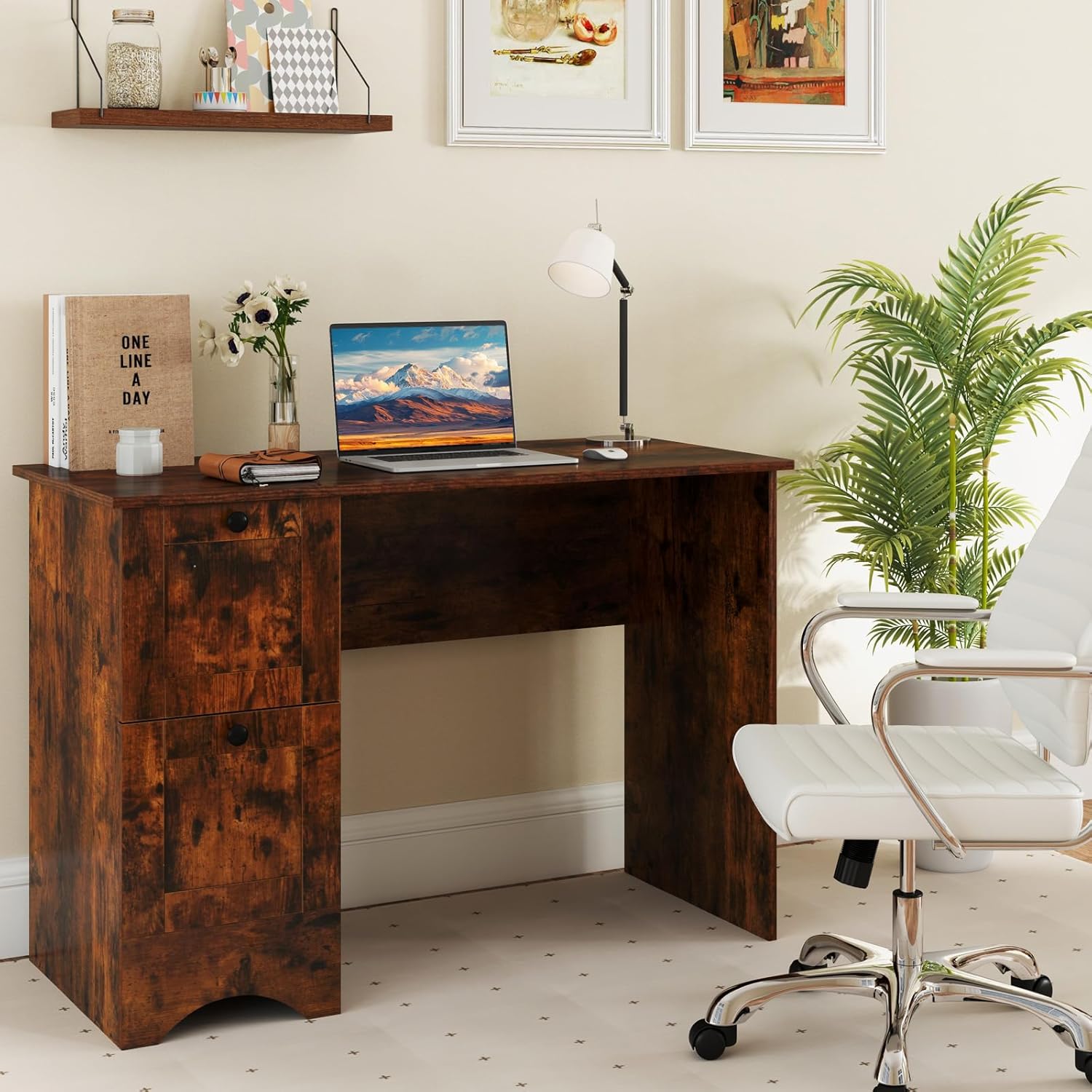 - Bureau polyvalent pour n'importe quelle pièce – Parfaitement adaptable, placez ce bureau peu encombrant où vous le souhaitez, que ce soit dans votre salon ou salle d'étude. Son design élégant et moderne s'intègre harmonieusement dans différentes décorations intérieures. Disponible en deux finitions attrayantes : blanc ou bois rustique.