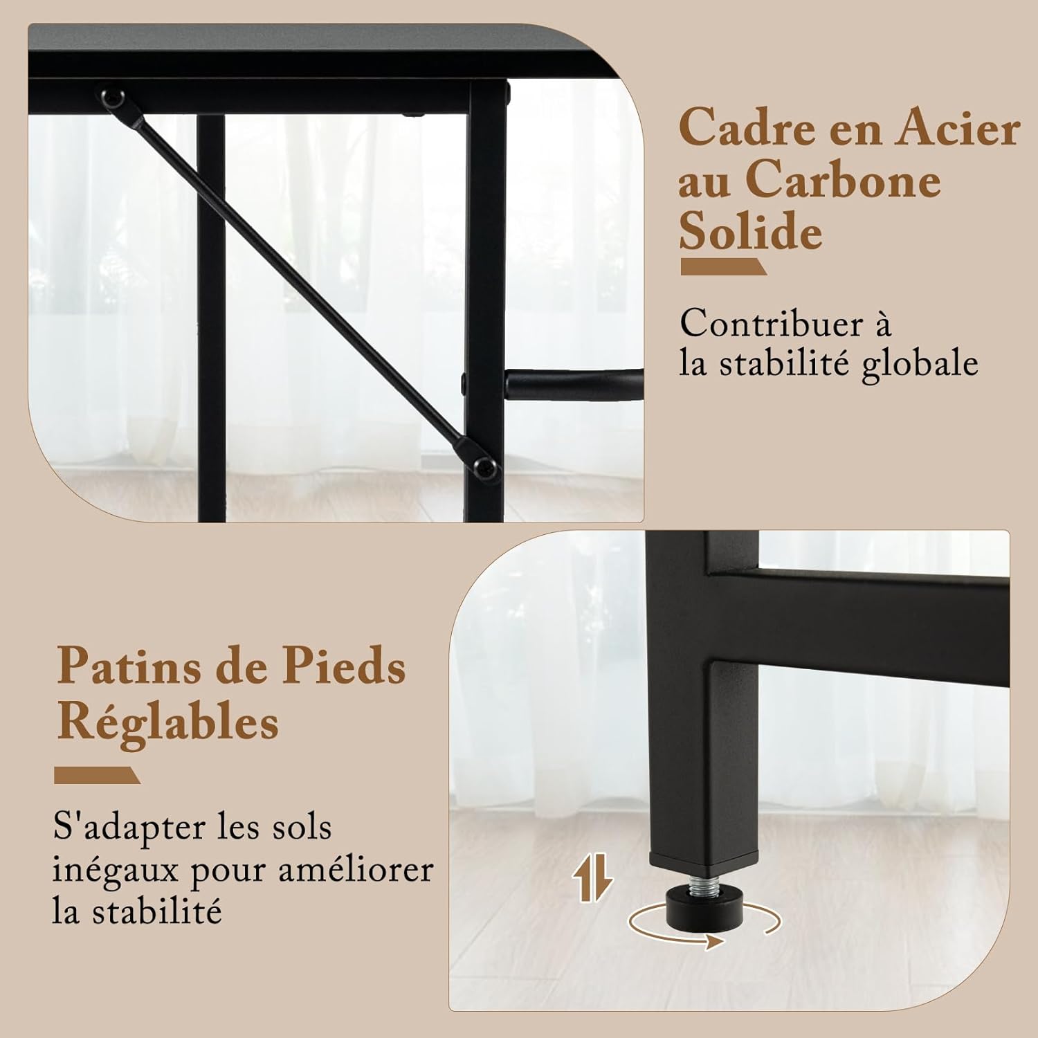 - 𝐌𝐚𝐭é𝐫𝐢𝐚𝐮 𝐃𝐮𝐫𝐚𝐛𝐥𝐞 𝐞𝐭 𝐂𝐨𝐧𝐬𝐭𝐫𝐮𝐜𝐭𝐢𝐨𝐧 𝐑𝐨𝐛𝐮𝐬𝐭𝐞 # La bureau d'ordinateur est fabriquée en panneau de haute qualité et en cadre métallique robuste, résistante à l'humidité et indéformable pour une longue durée de vie. Les patins réglables peuvent rester stables même sur un sol inégal.