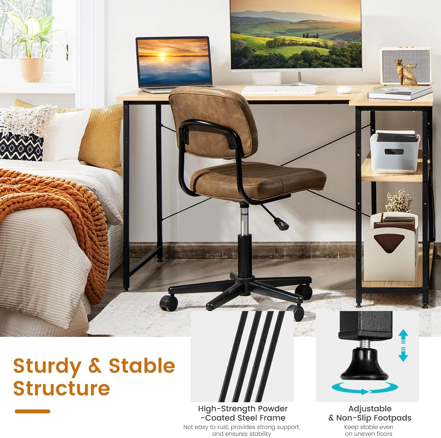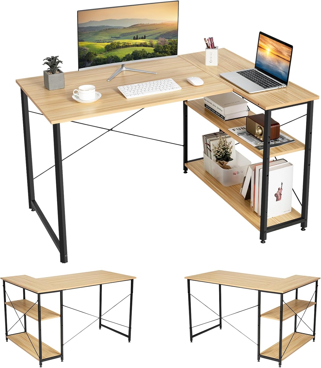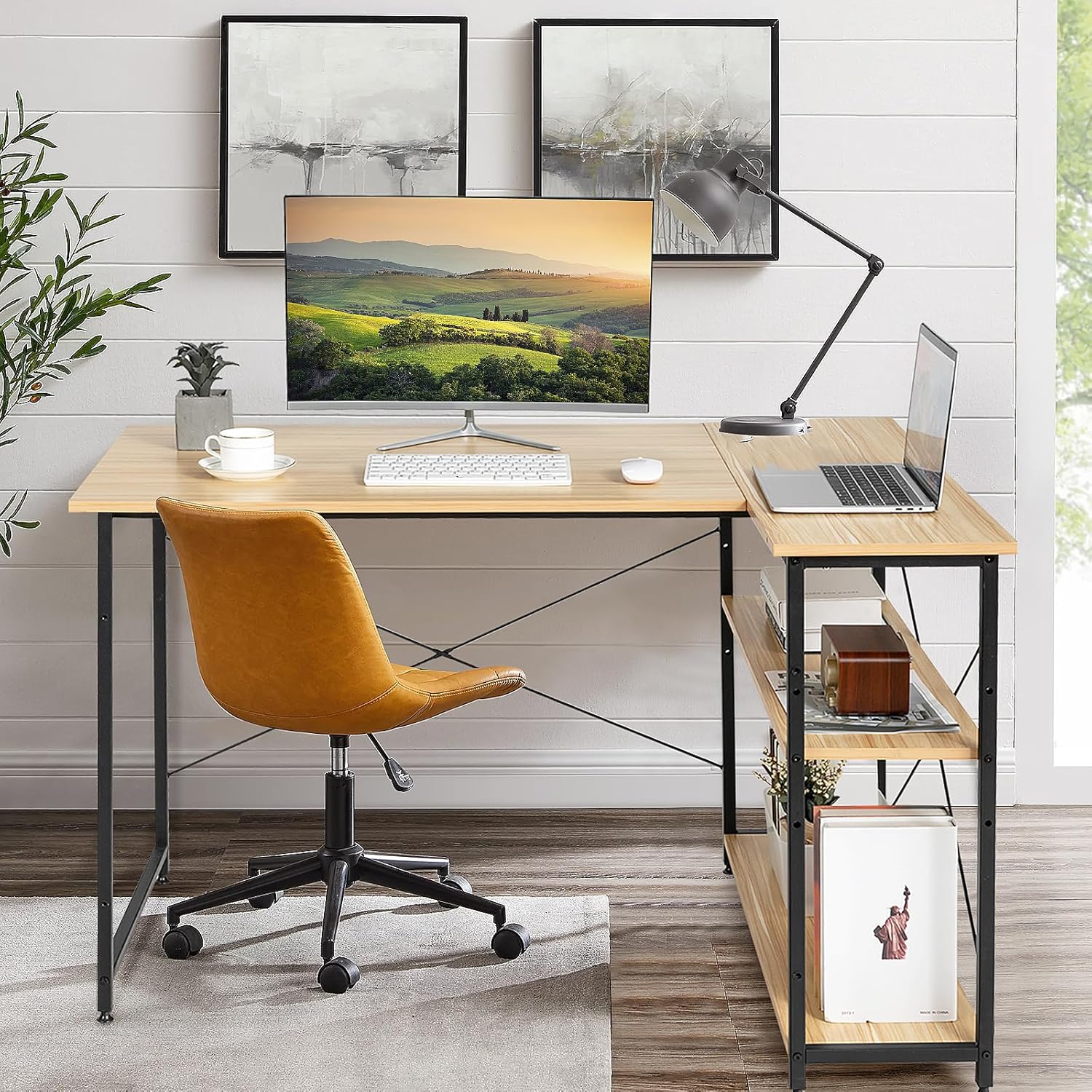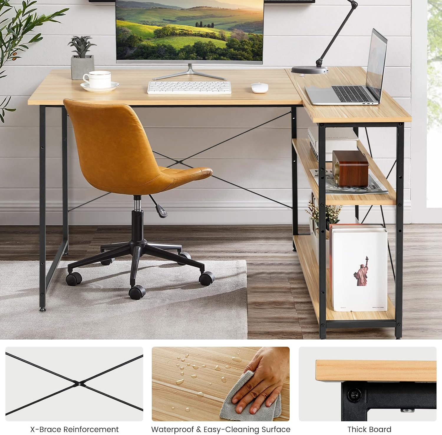 - Design réversible : le bureau en forme de L est équipé de 2 étagères réversibles, qui peuvent être placées à gauche ou à droite en fonction des préférences personnelles et de la disposition spatiale de la pièce. En outre, l'étagère supérieure dispose de 3 hauteurs réglables et l'étagère inférieure a 2 hauteurs réglables, qui peuvent accueillir des objets de différentes tailles.