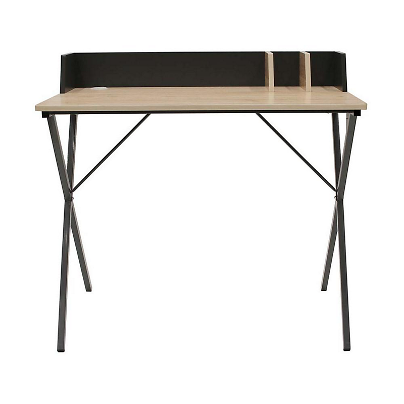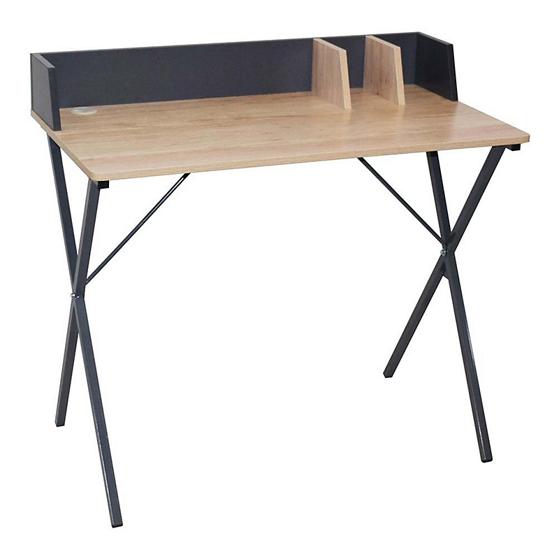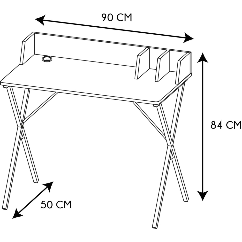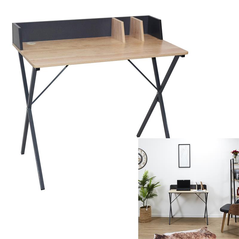Ce bureau épuré sera parfait pour organiser un espace de travail efficace et peu encombrant. - Design industriel - Dimensions : 90x84x50 cm - Composition : Métal Acier inoxydable - Plastique Mélamine
