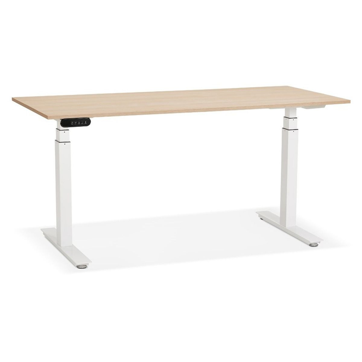 Bureau Design Réglable "Électrique" 160cm Naturel & Blanc