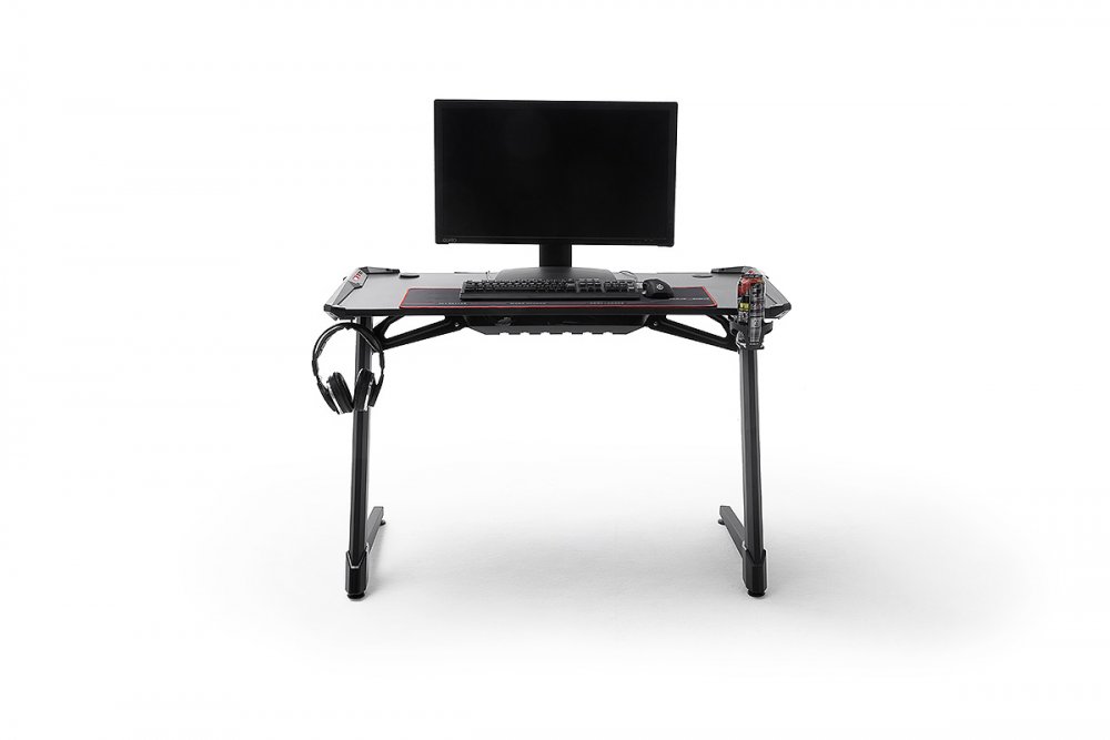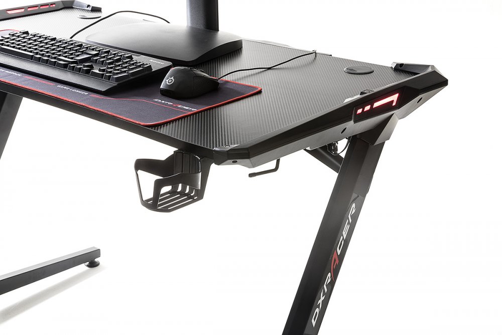 Ce bureau comporte également un espace de rangement pour les câbles, un porte-boisson et un support pour y déposer votre casque pour rendre plus facile l'installation d'un setup gaming.