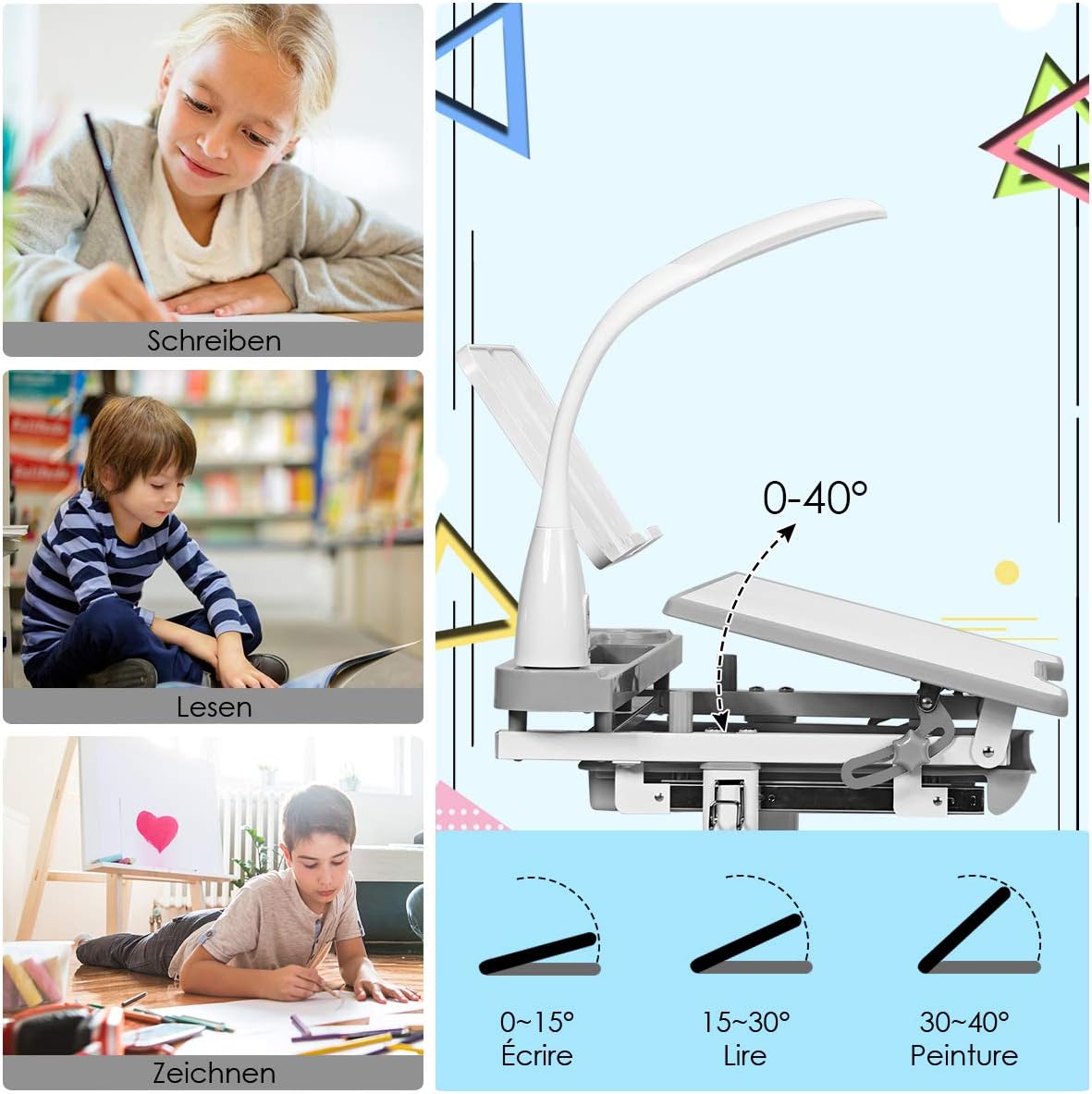 Bureau enfant avec chaise hauteurs réglables, angle de bureau réglable lampe de direction ajustable suppo